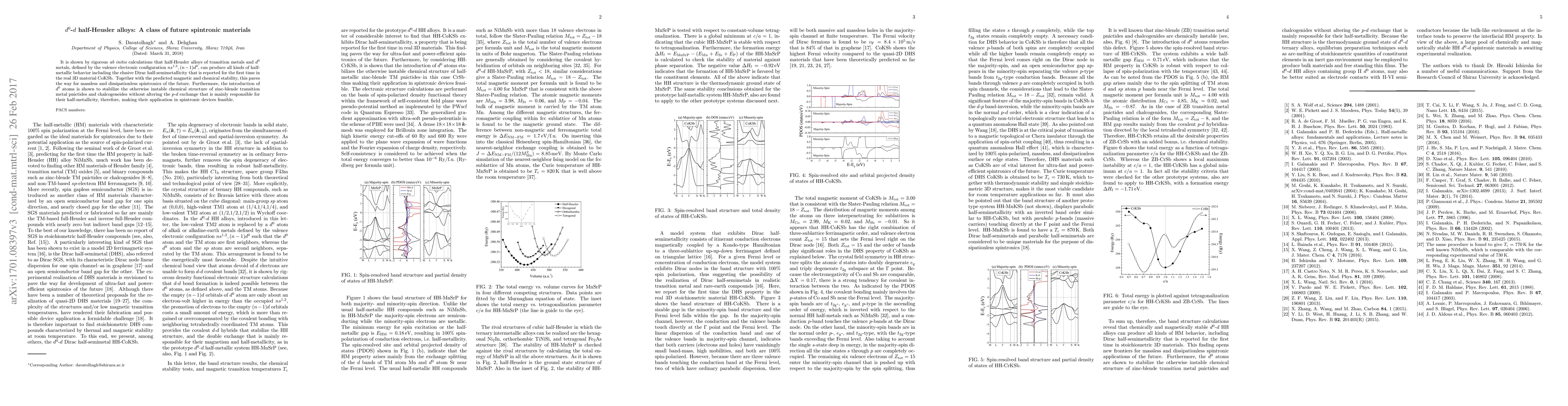 This paper demonstrates that $d^0$-$d$ half-Heusler alloys exhibit half-metallic behavior, including Dirac half-semimetallicity, making them promising for future spintronic applications. The introduction of $d^0$ atoms stabilizes zinc-blende transition metal compounds, enhancing their potential for spintronic devices.