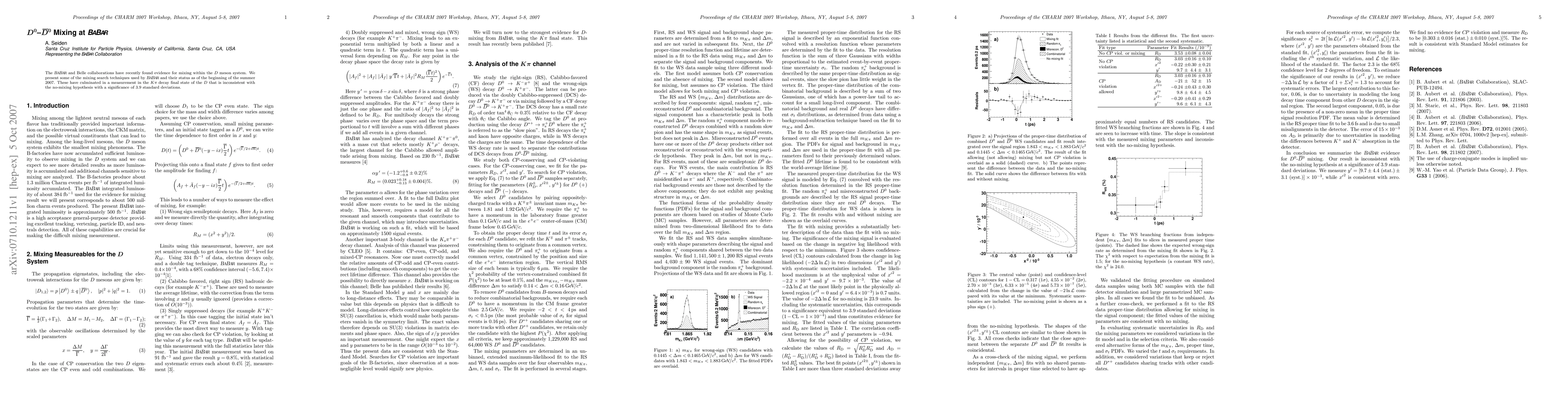 The BaBar collaboration has found evidence of mixing within the D meson system, with a measurement in the K decay final state inconsistent with no-mixing hypothesis, at 3.9 standard deviations.
