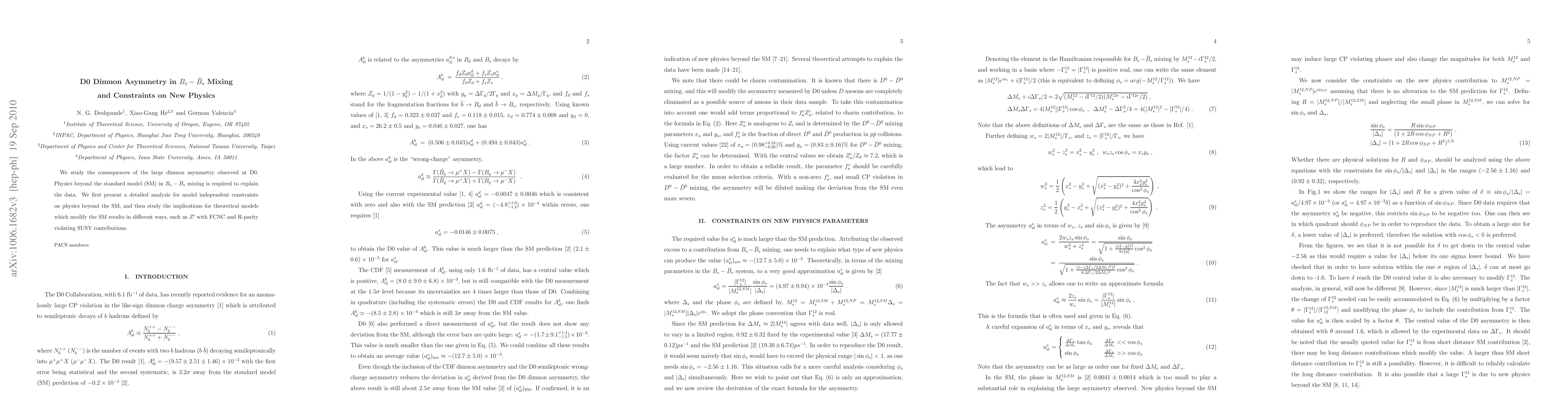 We study the consequences of the large dimuon asymmetry observed at D0. Physics beyond the standard model (SM) in $B_s-\bar B_s$ mixing is required to explain the data. We first present a detailed analysis for model independent constraints on physics beyond the SM, and then study the implications for theoretical models which modify the SM results in different ways, such as $Z'$ with FCNC and R-parity violating SUSY contributions.
