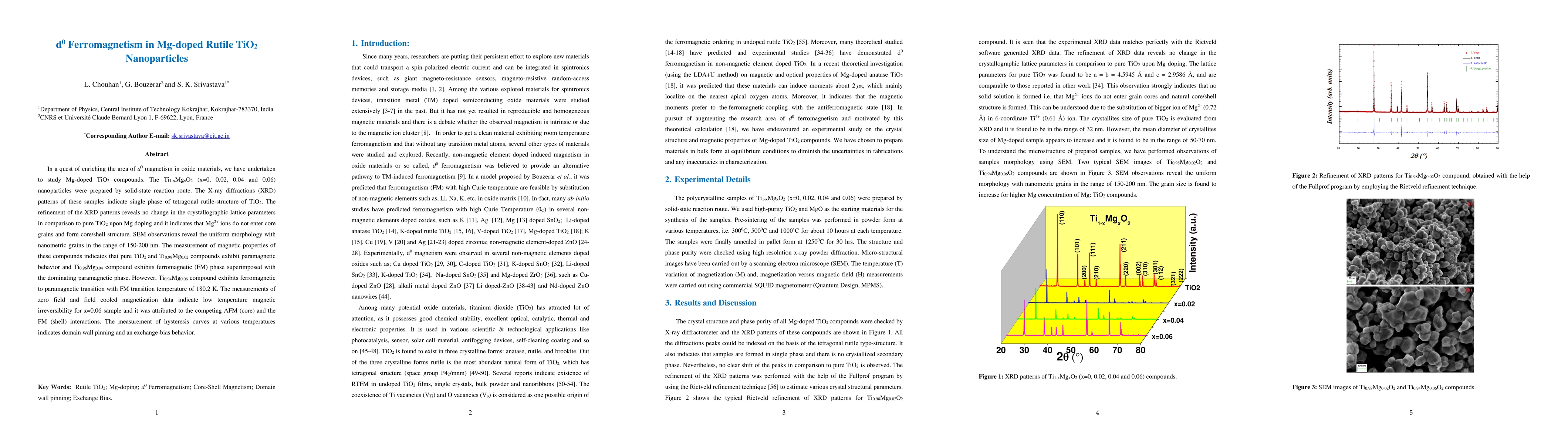 Researchers discovered ferromagnetism in Mg-doped rutile TiO2 nanoparticles at temperatures as low as 180.2 K, with the transition temperature increasing with doping level.