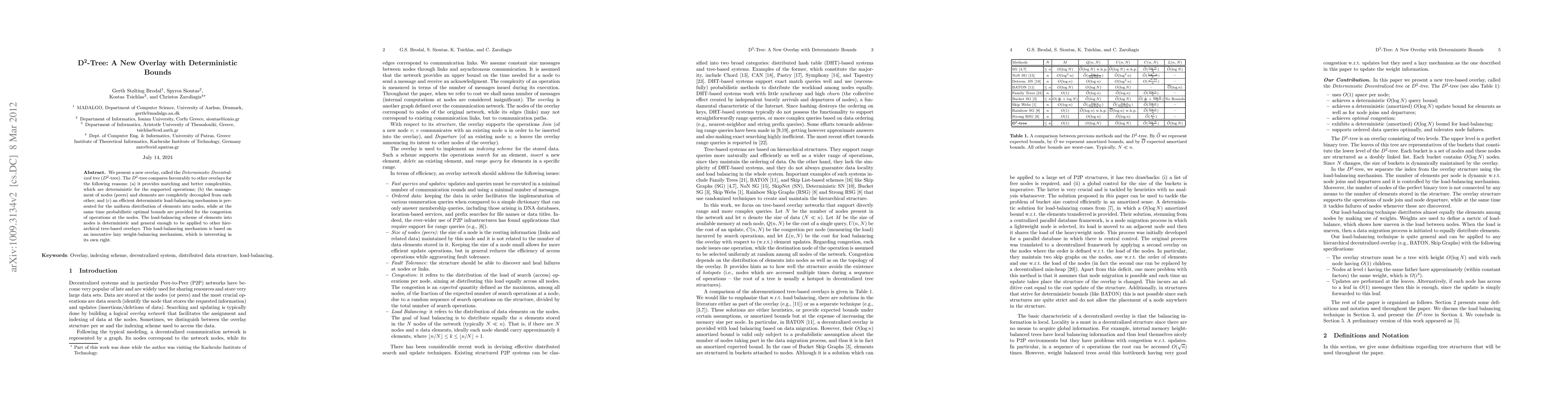 We present a new overlay, called the {\em Deterministic Decentralized tree} ($D^2$-tree). The $D^2$-tree compares favourably to other overlays for the following reasons: (a) it provides matching and better complexities, which are deterministic for the supported operations; (b) the management of nodes (peers) and elements are completely decoupled from each other; and (c) an efficient deterministic load-balancing mechanism is presented for the uniform distribution of elements into nodes, while at the same time probabilistic optimal bounds are provided for the congestion of operations at the nodes. The load-balancing scheme of elements into nodes is deterministic and general enough to be applied to other hierarchical tree-based overlays. This load-balancing mechanism is based on an innovative lazy weight-balancing mechanism, which is interesting in its own right.