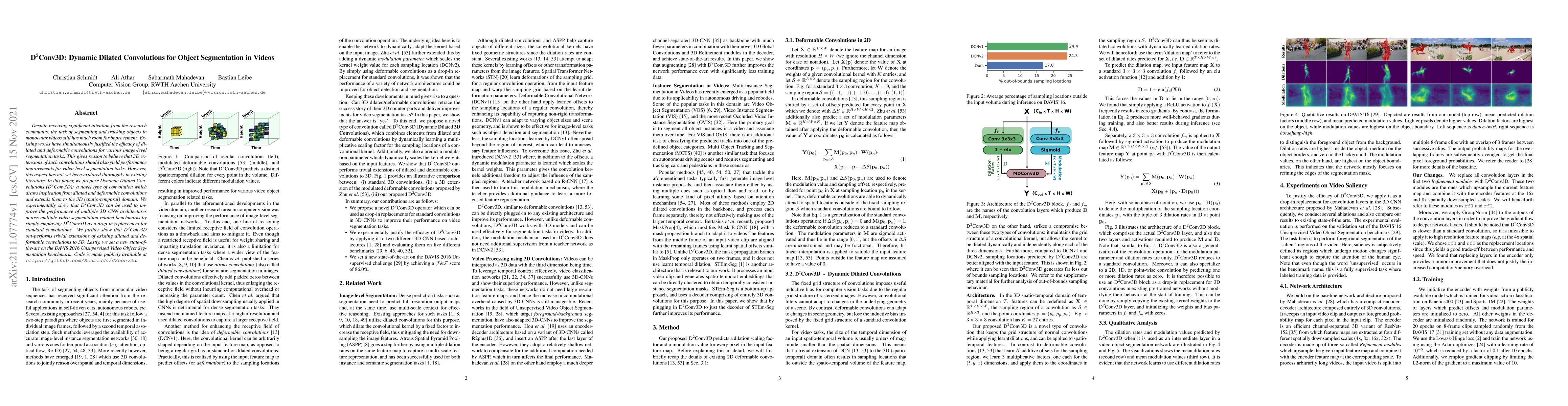This research paper introduces Dynamic Dilated Convolutions (D^2Conv3D) for enhancing object segmentation in videos. The proposed method leverages the strengths of dilated and deformable convolutions in a 3D (spatio-temporal) context, achieving superior performance over existing 3D convolutions and setting a new state-of-the-art on the DAVIS 2016 benchmark. The authors provide a publicly available code for reproducibility.