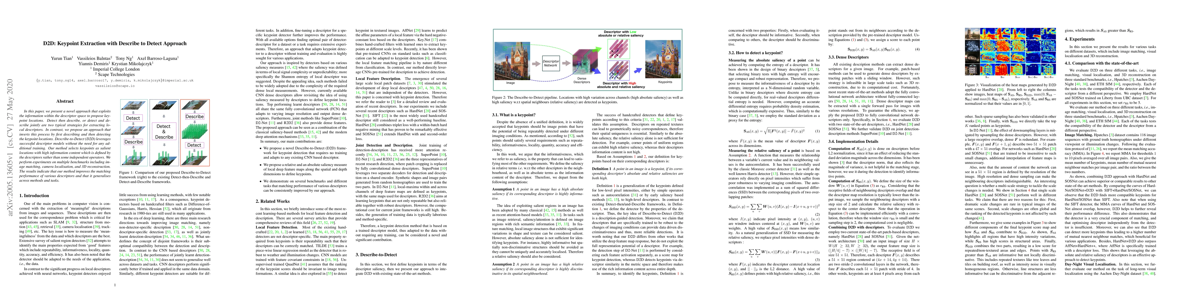 A new approach called Describe-to-Detect (D2D) improves local descriptor matching by first describing keypoint locations using descriptors, then detecting them.