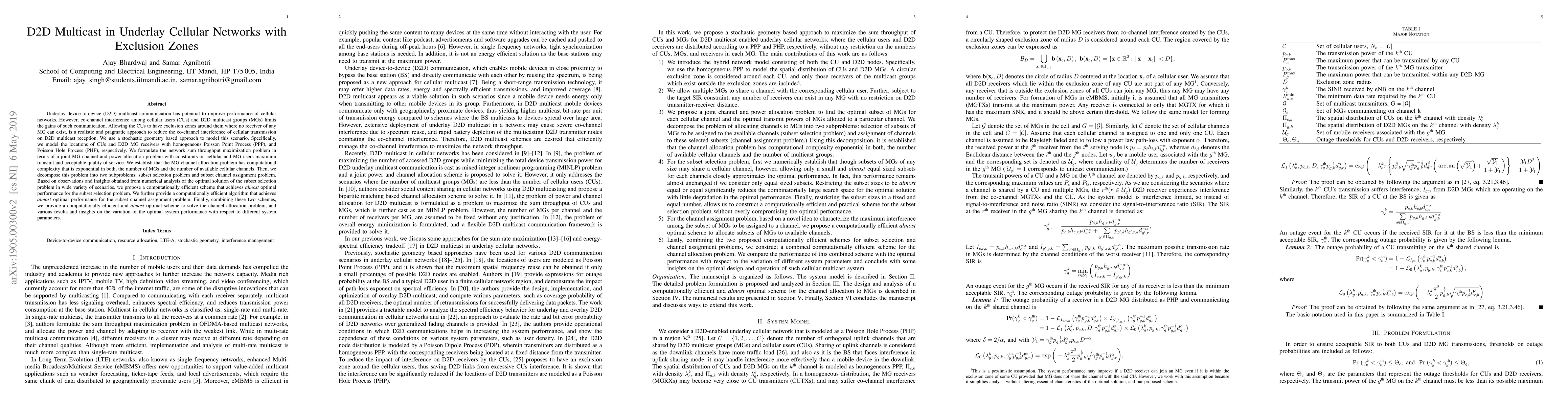 This paper explores underlay D2D multicast in cellular networks, aiming to enhance performance while mitigating co-channel interference by employing exclusion zones for cellular users. It proposes a stochastic geometry model and formulates a sum throughput maximization problem, decomposing it into computationally efficient schemes for channel allocation.