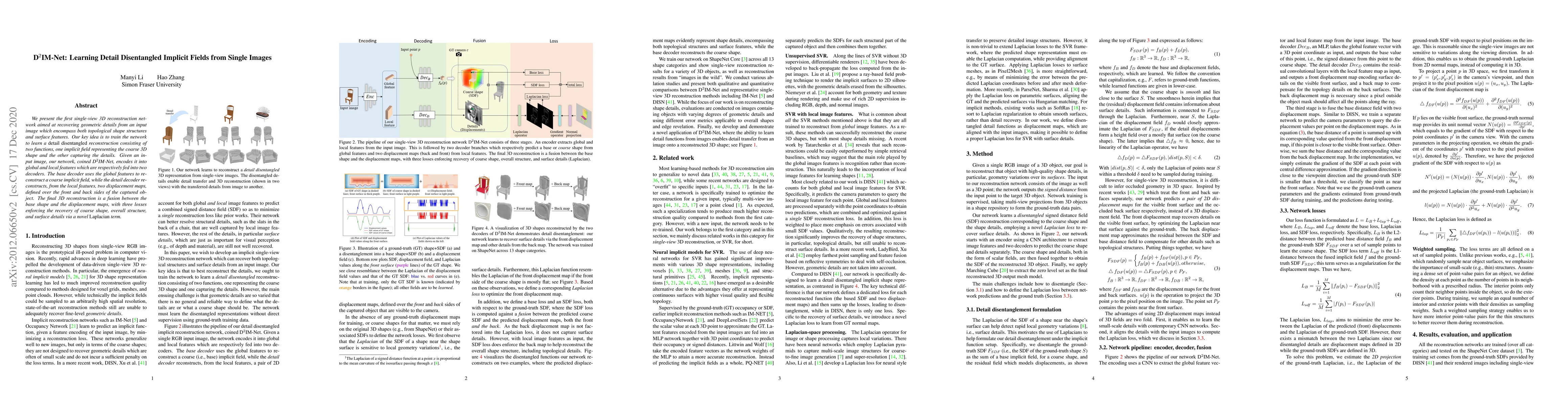 This paper introduces D$^2$IM-Net, a network that learns to recover detailed 3D shapes from single images by separating coarse shape structure from surface features into two independent functions.
