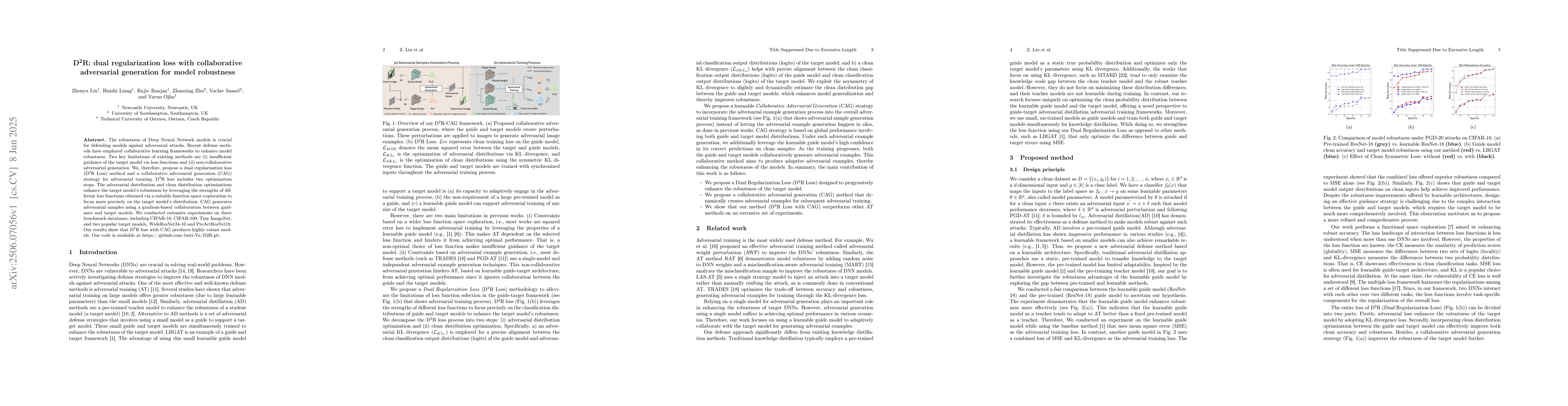 A new method called D2R loss enhances model robustness by using dual regularization losses and collaborative adversarial generation, resulting in highly robust models on three benchmark databases.
