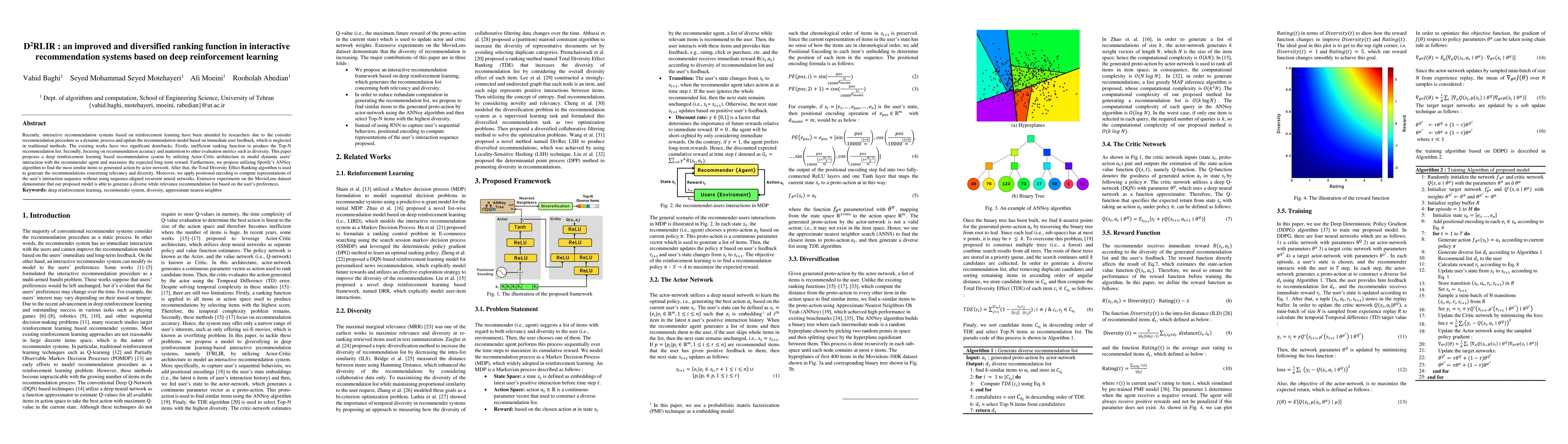 This paper proposes D2RLIR, a deep reinforcement learning-based interactive recommendation system that improves ranking functions for generating diverse and relevant Top-N recommendations. It utilizes an Actor-Critic architecture and the ANNoy algorithm to enhance recommendation diversity and relevance, outperforming traditional methods.