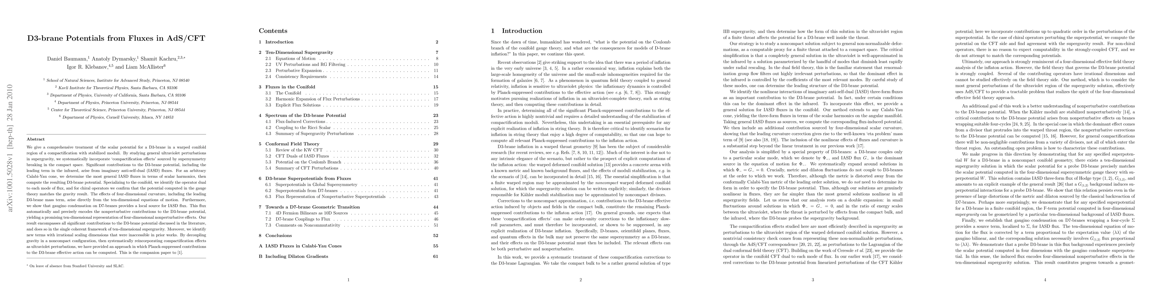 We give a comprehensive treatment of the scalar potential for a D3-brane in a warped conifold region of a compactification with stabilized moduli. By studying general ultraviolet perturbations in supergravity, we systematically incorporate `compactification effects' sourced by supersymmetry breaking in the compact space. Significant contributions to the D3-brane potential, including the leading term in the infrared, arise from imaginary anti-self-dual (IASD) fluxes. For an arbitrary Calabi-Yau cone, we determine the most general IASD fluxes in terms of scalar harmonics, then compute the resulting D3-brane potential. Specializing to the conifold, we identify the operator dual to each mode of flux, and for chiral operators we confirm that the potential computed in the gauge theory matches the gravity result. The effects of four-dimensional curvature, including the leading D3-brane mass term, arise directly from the ten-dimensional equations of motion. Furthermore, we show that gaugino condensation on D7-branes provides a local source for IASD flux. This flux precisely encodes the nonperturbative contributions to the D3-brane potential, yielding a promising ten-dimensional representation of four-dimensional nonperturbative effects. Our result encompasses all significant contributions to the D3-brane potential discussed in the literature, and does so in the single coherent framework of ten-dimensional supergravity. Moreover, we identify new terms with irrational scaling dimensions that were inaccessible in prior works. By decoupling gravity in a noncompact configuration, then systematically reincorporating compactification effects as ultraviolet perturbations, we have provided an approach in which Planck-suppressed contributions to the D3-brane effective action can be computed.