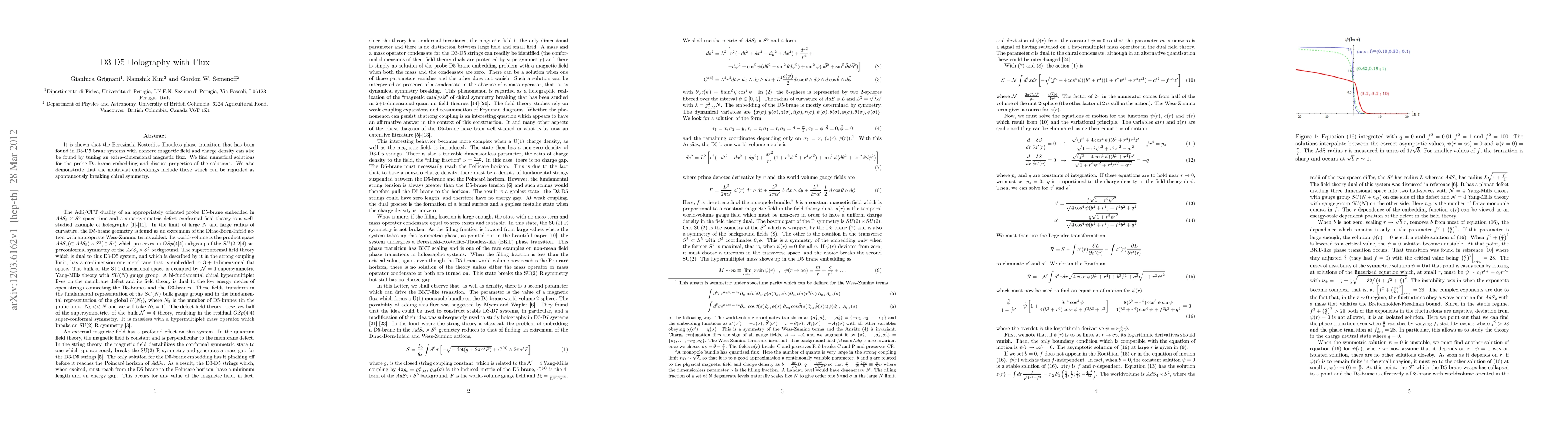 This paper demonstrates that the Berezinski-Kosterlitz-Thouless phase transition in D3-D5 brane systems can be replicated by tuning extra-dimensional magnetic flux, and it provides numerical solutions for probe D5-brane embeddings, highlighting spontaneous chiral symmetry breaking in nontrivial embeddings.