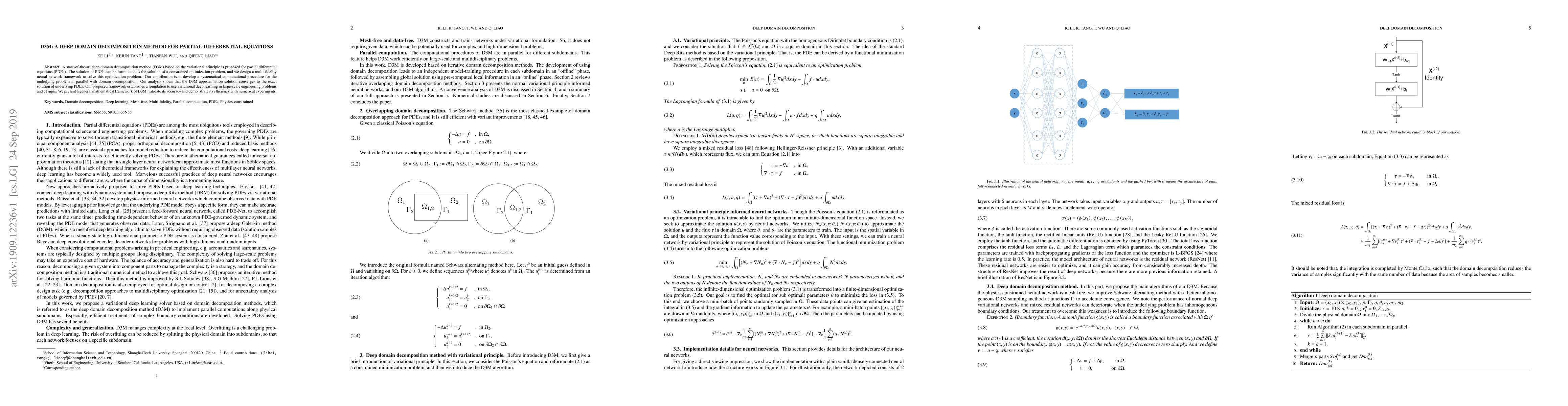 A state-of-the-art deep domain decomposition method (D3M) based on the variational principle is proposed for partial differential equations (PDEs). The solution of PDEs can be formulated as the solution of a constrained optimization problem, and we design a multi-fidelity neural network framework to solve this optimization problem. Our contribution is to develop a systematical computational procedure for the underlying problem in parallel with domain decomposition. Our analysis shows that the D3M approximation solution converges to the exact solution of underlying PDEs. Our proposed framework establishes a foundation to use variational deep learning in large-scale engineering problems and designs. We present a general mathematical framework of D3M, validate its accuracy and demonstrate its efficiency with numerical experiments.