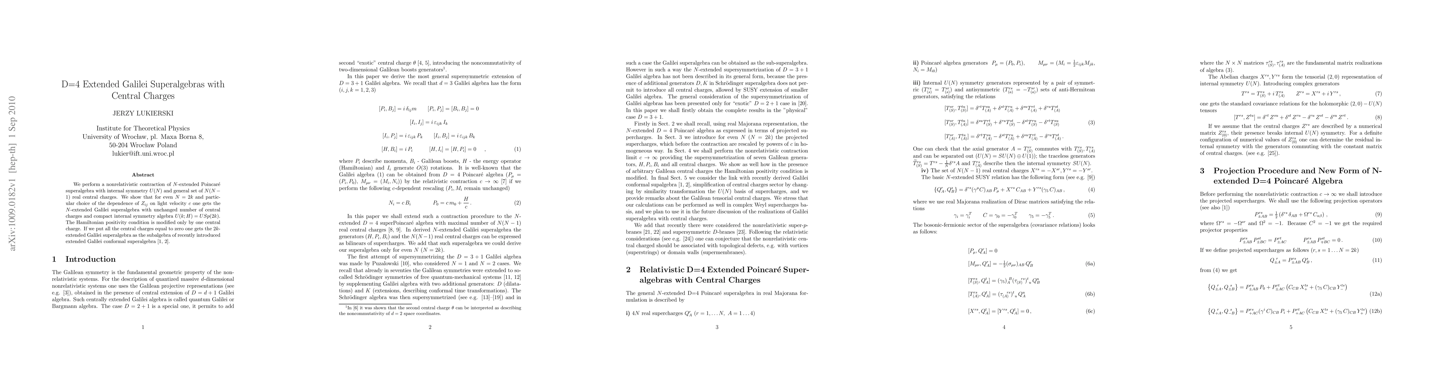 This paper explores the nonrelativistic contraction of N-extended Poincaré superalgebras with U(N) symmetry and central charges, revealing the emergence of N-extended Galilei superalgebras with preserved central charges and internal symmetry algebra USp(2k) for even N=2k. The study highlights modifications to the Hamiltonian positivity condition due to central charges.