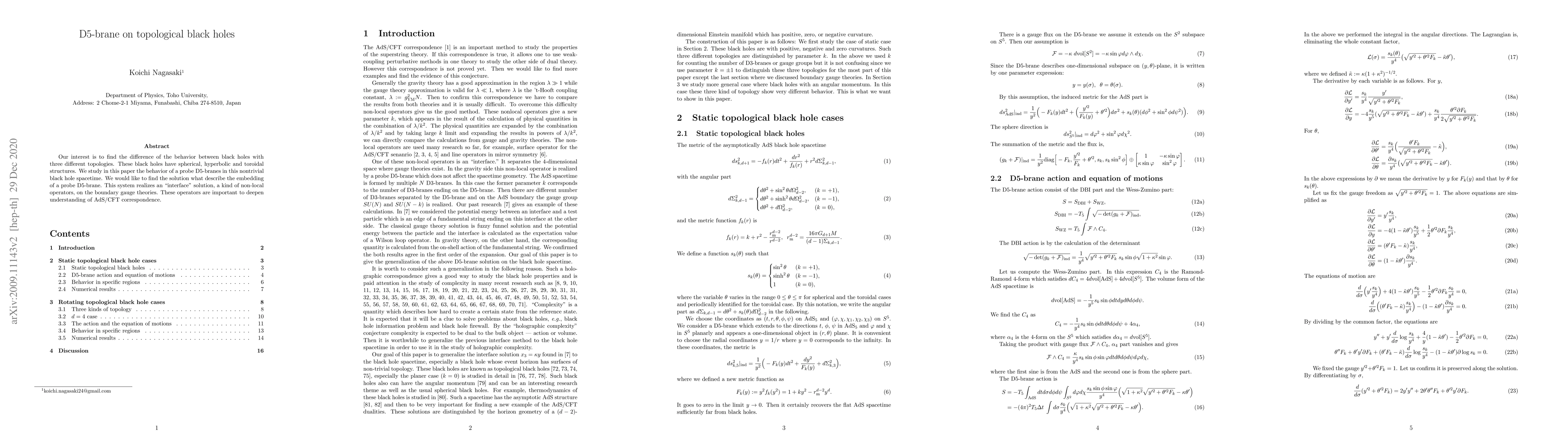 This paper investigates the behavior of a probe D5-brane in the nontrivial spacetimes of three distinct topological black holes: spherical, hyperbolic, and toroidal. It aims to find the embedding solution of the D5-brane and explores its relevance to non-local operators and the AdS/CFT correspondence.