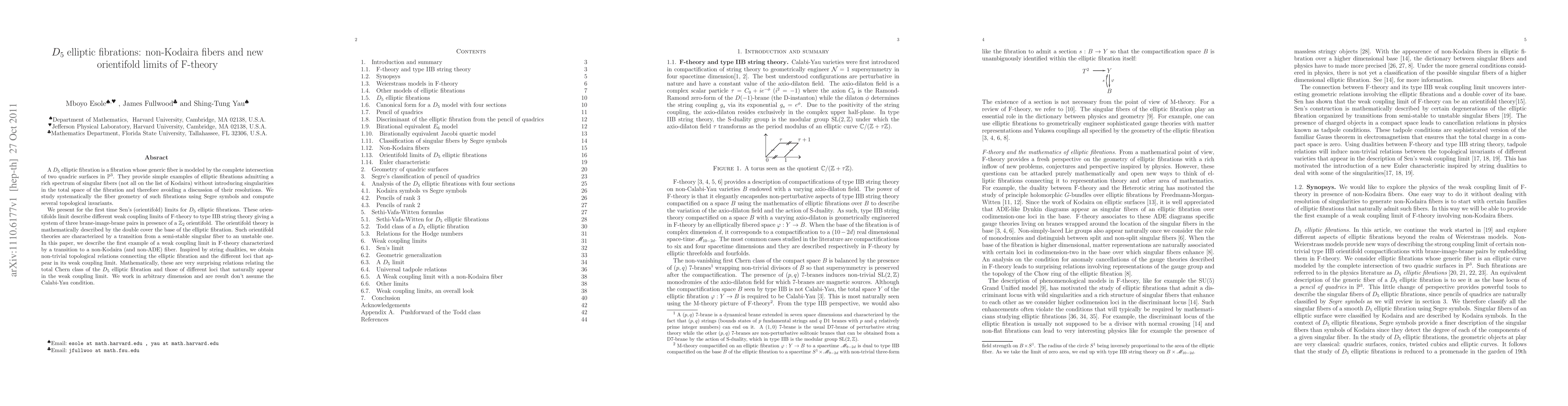 This paper investigates D5 elliptic fibrations, focusing on non-Kodaira fibers and the new orientifold limits of F-theory. It systematically examines the fiber geometry using Segre symbols and computes topological invariants, presenting Sen's orientifold limits for D5 fibrations, which describe transitions to non-Kodaira fibers and reveal surprising topological relations.