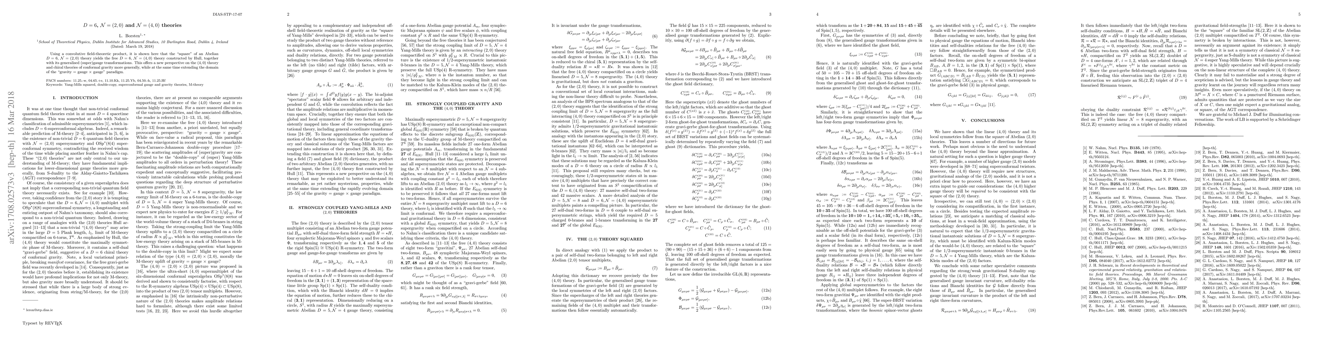 Using a convolutive field theoretic product, it is shown here that the "square" of an Abelian $D=6$, $\mathcal{N}=(2,0)$ theory yields the free $D=6$, $\mathcal{N}=(4,0)$ theory constructed by Hull, together with its generalised (super)gauge transformations. This offers a new perspective on the $(4, 0)$ theory and chiral theories of conformal gravity more generally, while at the same time extending the domain of the "gravity = gauge $\times$ gauge" paradigm.
