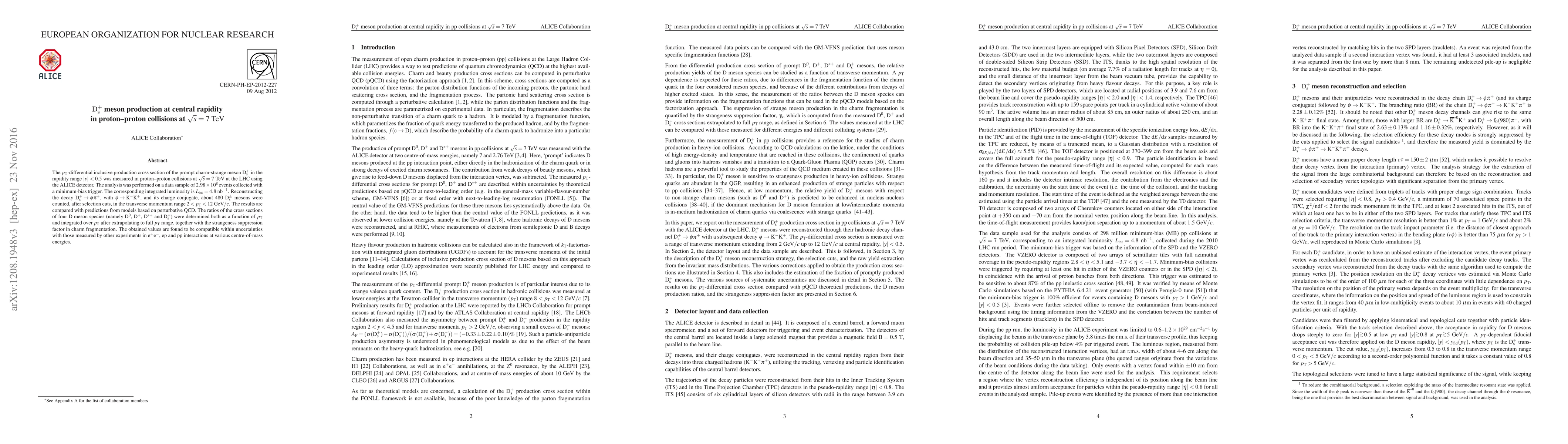 charm-strange meson $\rm D_s^+$ in the rapidity range $|y|<0.5$ was measured in