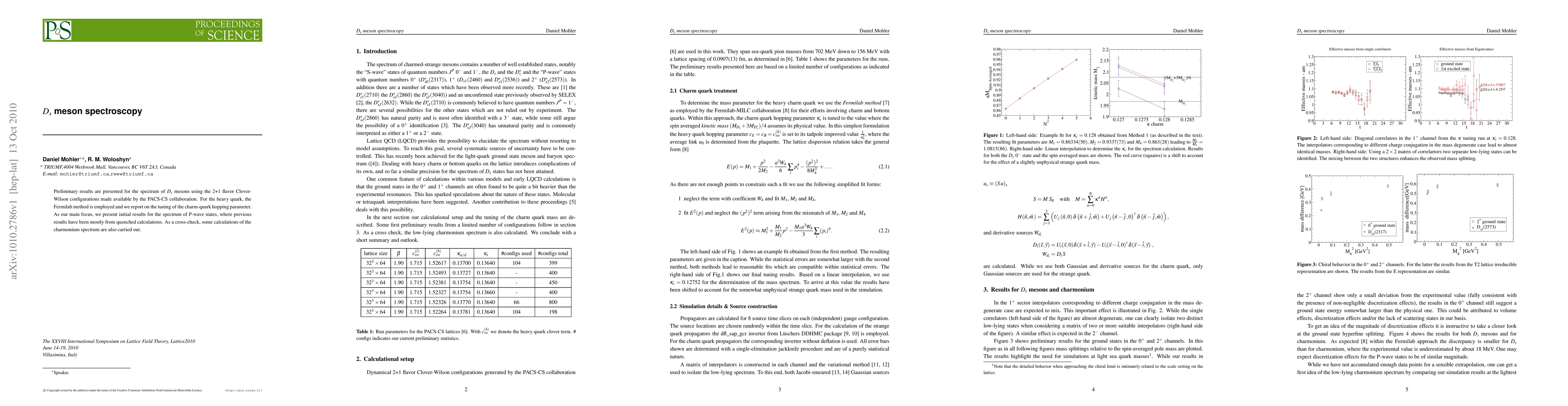Preliminary results are presented for the spectrum of D_s mesons using the 2+1 flavor Clover-Wilson configurations made available by the PACS-CS collaboration. For the heavy quark, the Fermilab method is employed and we report on the tuning of the charm-quark hopping parameter. As our main focus, we present initial results for the spectrum of P-wave states, where previous results have been mostly from quenched calculations. As a cross-check, some calculations of the charmonium spectrum are also carried out.