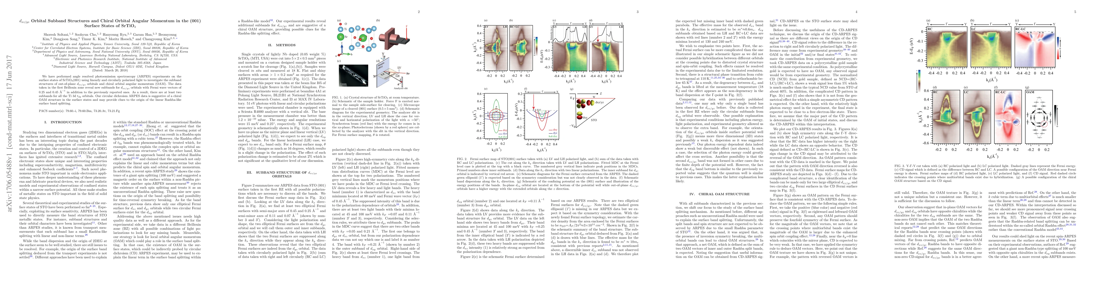 We have performed angle resolved photoemission spectroscopy (ARPES) experiments on the surface states of SrTiO$_3$(001) using linearly and circularly polarized light to investigate the subband structures of out-of-plane $d_{xz/yz}$ orbitals and chiral orbital angular momentum (OAM). The data taken in the first Brillouin zone reveal new subbands for $d_{xz/yz}$ orbitals with Fermi wave vectors of 0.25 and 0.45 $\mathrm{\AA}^{-1}$ in addition to the previously reported ones. As a result, there are at least two subbands for all the Ti 3d t$_{2g}$ orbitals. Our circular dichroism ARPES data is suggestive of a chiral OAM structure in the surface states and may provide clues to the origin of the linear Rashba-like surface band splitting.
