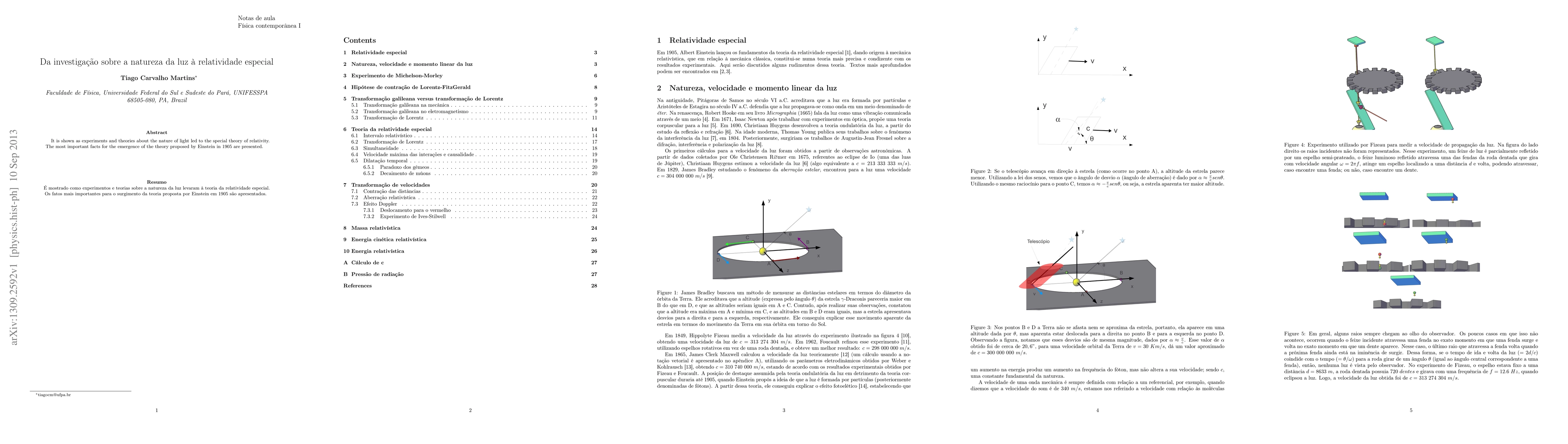 This paper explores how experiments and theories on light's nature paved the way for Einstein's special relativity theory in 1905, highlighting key facts that led to its emergence.