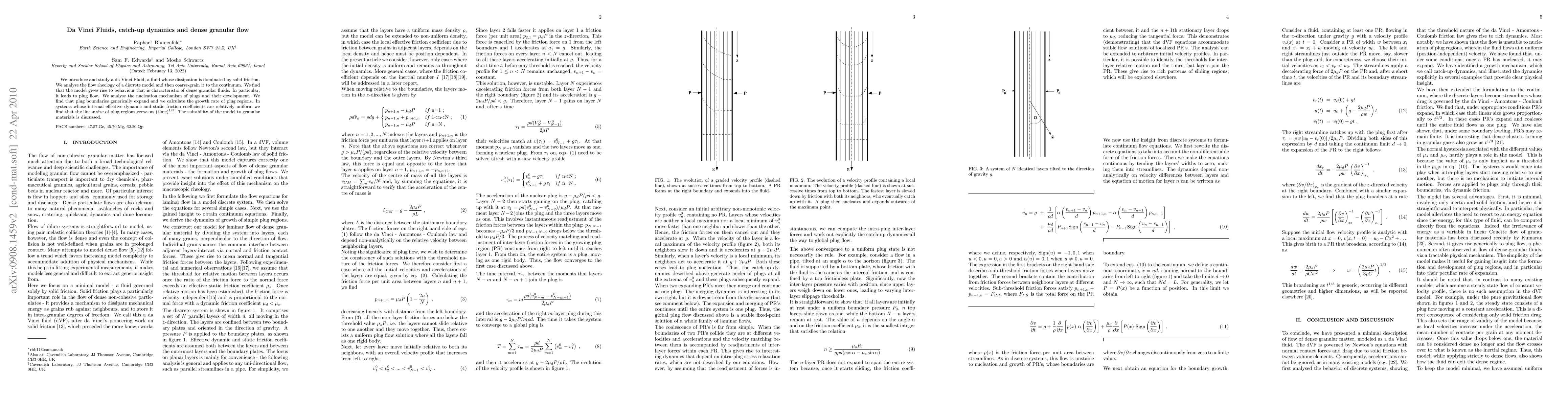This paper introduces da Vinci Fluids, characterized by dissipation dominated by solid friction, and analyzes their rheology transitioning from discrete to continuum models. The study reveals plug flow behavior typical of dense granular fluids, with plug boundaries expanding and plug size growth proportional to time to the power of 1/3 in systems with uniform internal friction.