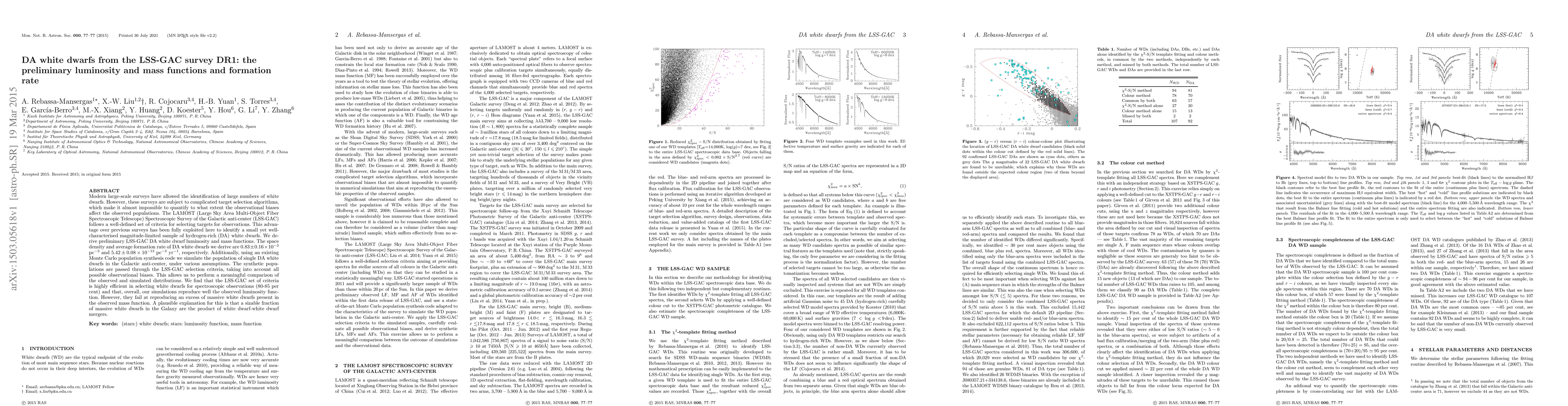 This paper identifies a well-characterized sample of DA white dwarfs from the LSS-GAC survey, deriving preliminary luminosity and mass functions. The space density and formation rate of DA white dwarfs are found to be 0.83±0.16 x 10^{-3} pc^{-3} and 5.42 ± 0.08 x 10^{-13} pc^{-3} yr^{-1}, respectively. Simulations show the survey's high efficiency in selecting white dwarfs but indicate an excess of massive white dwarfs in the observed mass function, possibly due to white dwarf mergers.