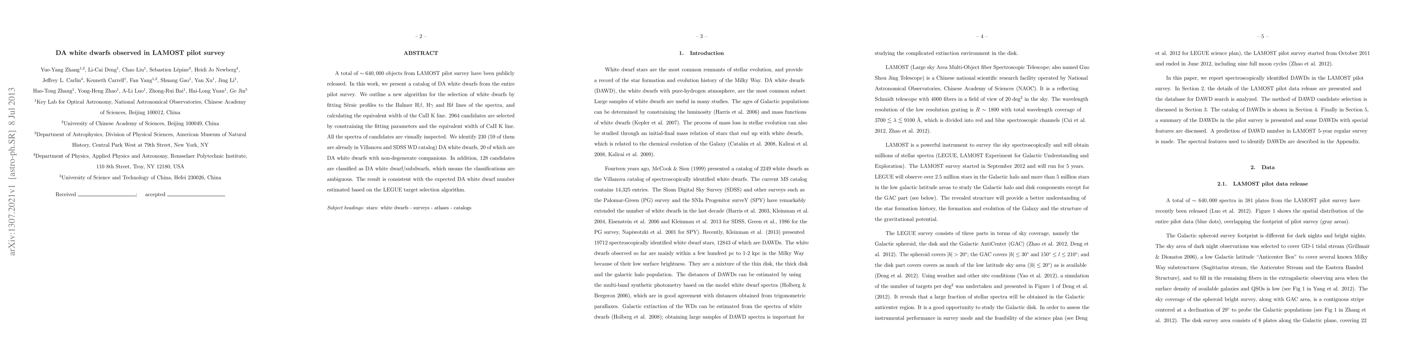 The research advances white dwarf identification techniques and provides a comprehensive catalog of DA white dwarfs from the LAMOST pilot survey, offering a valuable resource for further studies on stellar populations and Galactic structure.