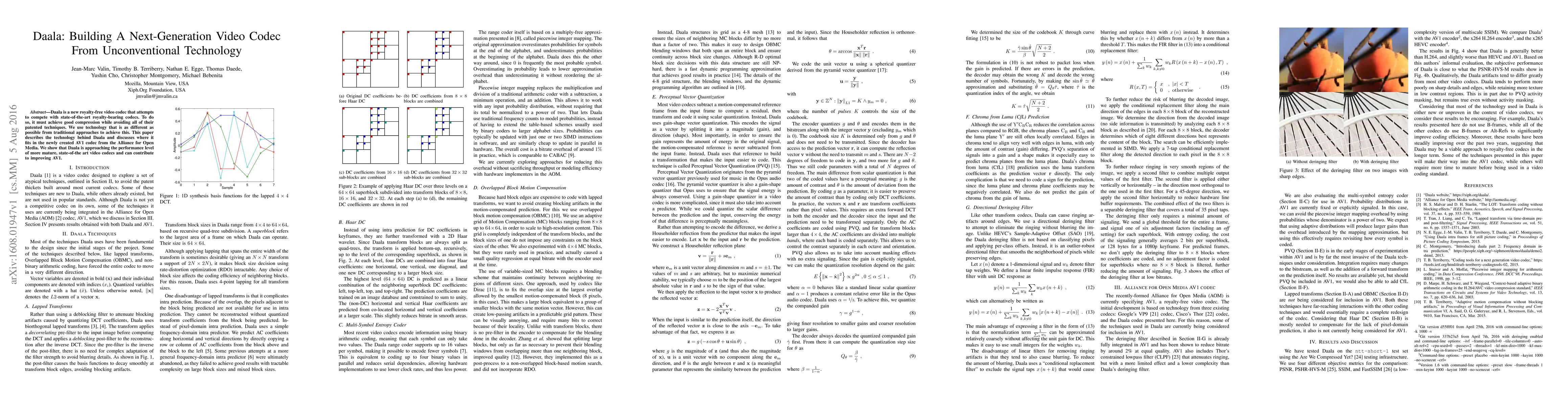 Daala is a novel royalty-free video codec designed to rival existing patented codecs by employing unconventional, patent-free technology. It aims to achieve competitive compression efficiency and is intended to enhance the AV1 codec from the Alliance for Open Media.