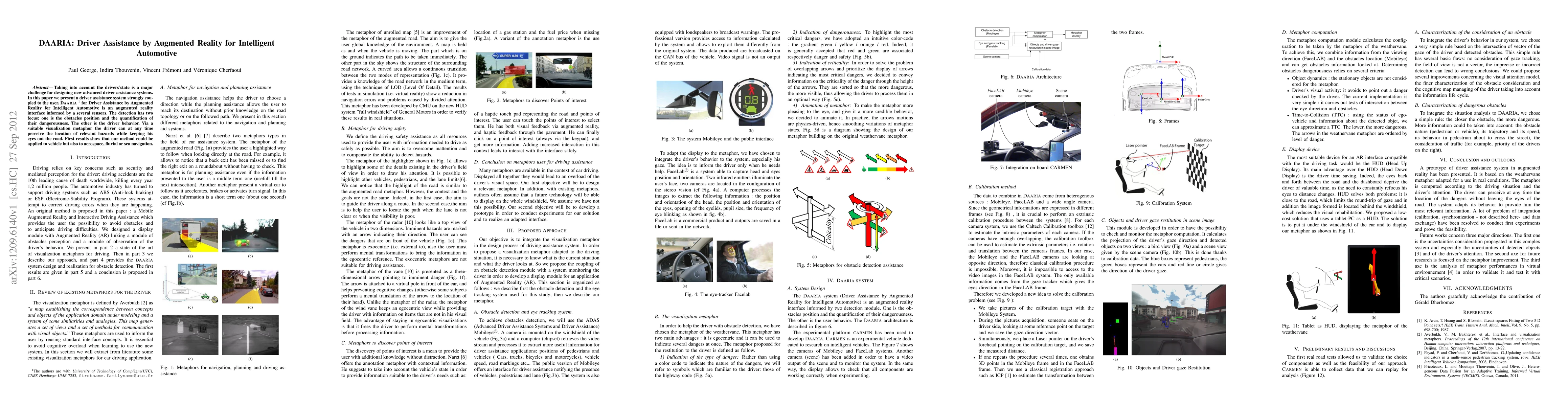The paper introduces DAARIA, an augmented reality driver assistance system using sensors to detect and quantify obstacles and driver behavior, enabling real-time hazard awareness. Initial results suggest its potential application beyond automobiles, including aerospace, fluvial, and maritime navigation.