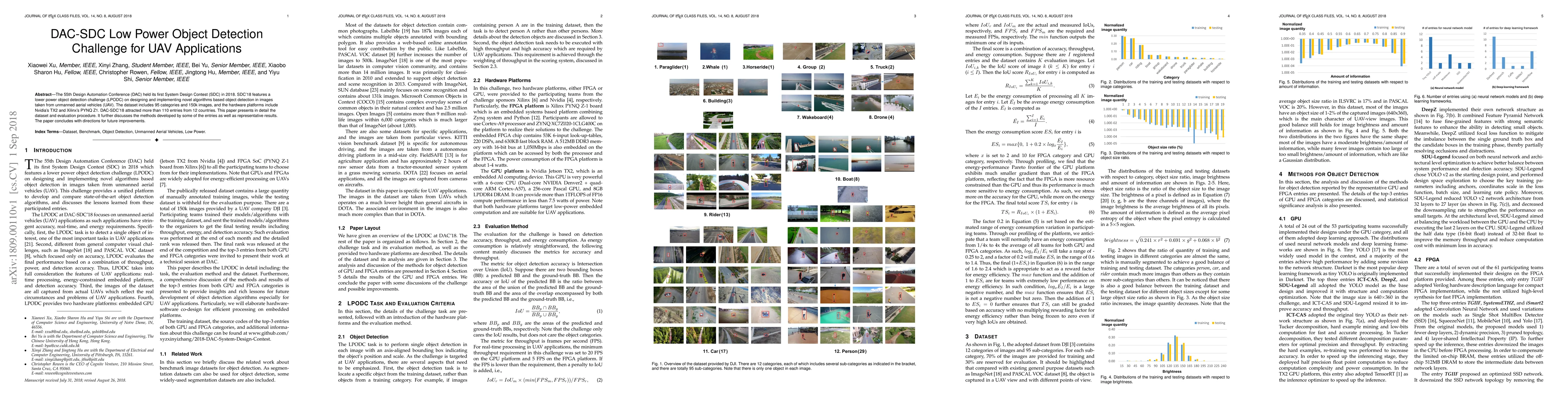 The DAC-SDC'18 Low Power Object Detection Challenge focused on developing efficient algorithms for UAV-based image object detection, featuring a dataset of 150k images across 95 categories and attracting over 110 entries from 12 countries. The paper details the dataset, evaluation methods, and highlights some developed algorithms and their results, concluding with future improvement directions.