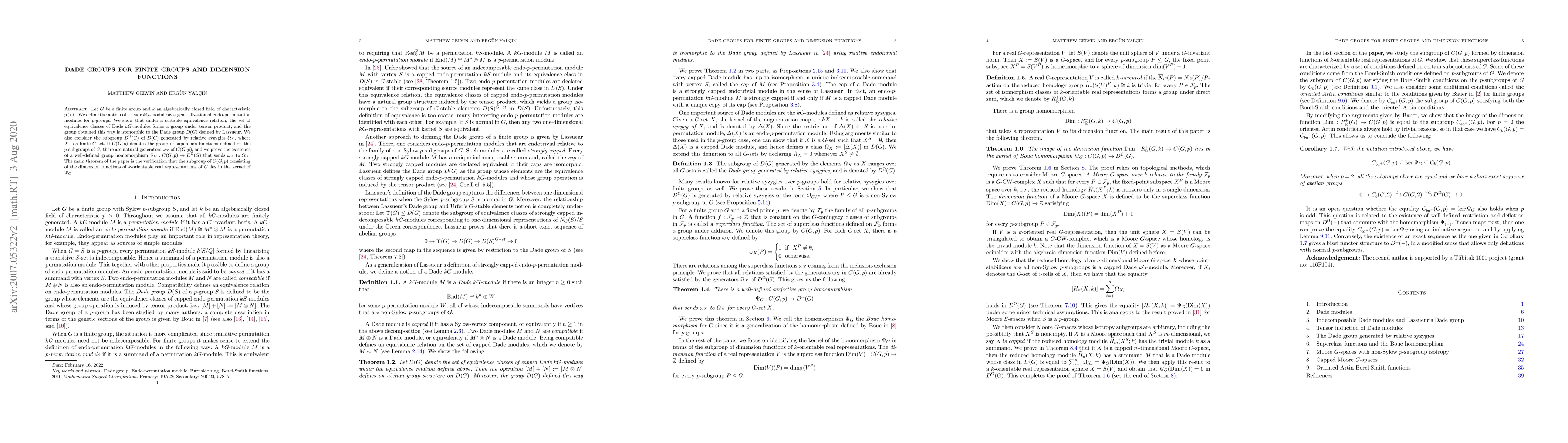 Let $G$ be a finite group and $k$ an algebraically closed field of characteristic $p>0$. We define the notion of a Dade $kG$-module as a generalization of endo-permutation modules for $p$-groups. We show that under a suitable equivalence relation, the set of equivalence classes of Dade $kG$-modules forms a group under tensor product, and the group obtained this way is isomorphic to the Dade group $D(G)$ defined by Lassueur. We also consider the subgroup $D^{\Omega} (G)$ of $D(G)$ generated by relative syzygies $\Omega_X$, where $X$ is a finite $G$-set. If $C(G,p)$ denotes the group of superclass functions defined on the $p$-subgroups of $G$, there are natural generators $\omega_X$ of $C(G,p)$, and we prove the existence of a well-defined group homomorphism $\Psi_G:C(G,p)\to D^\Omega(G)$ that sends $\omega_X$ to $\Omega_X$. The main theorem of the paper is the verification that the subgroup of $C(G,p)$ consisting of the dimension functions of $k$-orientable real representations of $G$ lies in the kernel of $\Psi_G$.