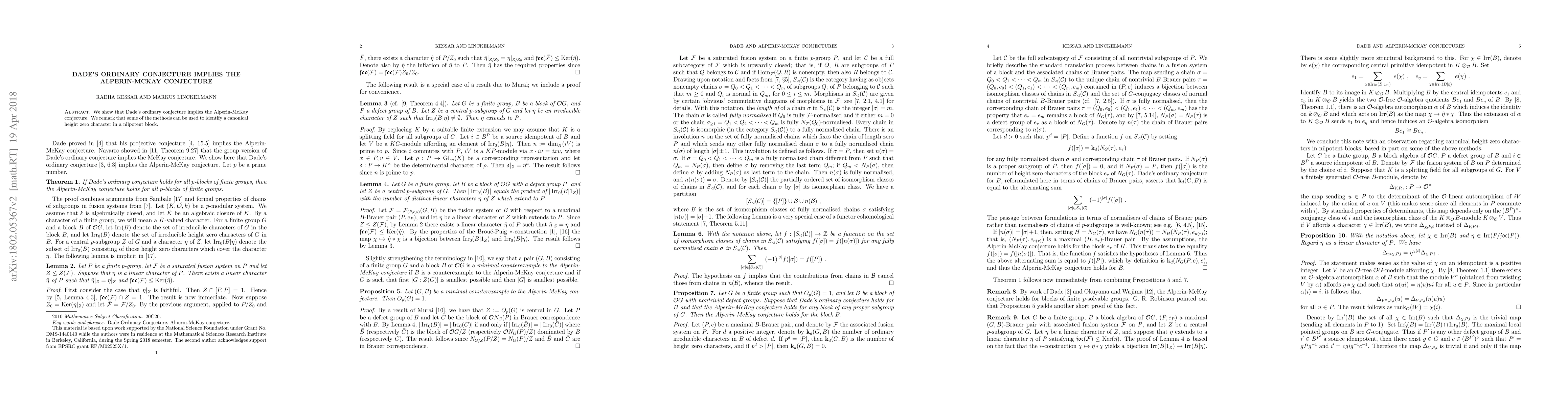 We show that Dade's ordinary conjecture implies the Alperin-McKay conjecture. We remark that some of the methods can be used to identify a canonical height zero character in a nilpotent block.