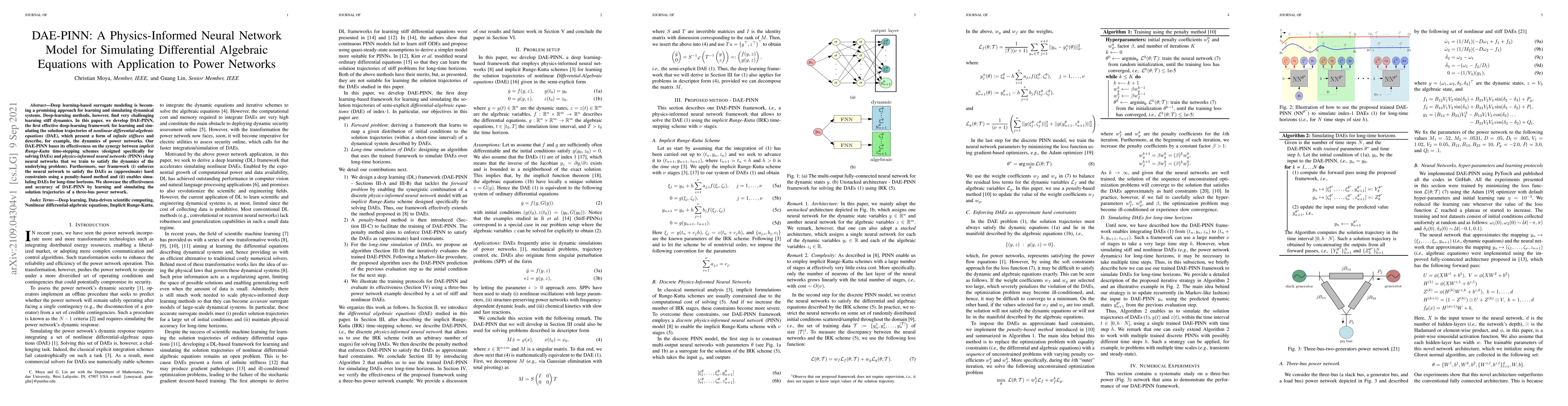 This paper introduces DAE-PINN, a novel deep-learning framework combining implicit Runge-Kutta schemes with physics-informed neural networks to simulate nonlinear differential-algebraic equations (DAEs), particularly for power networks. The method enforces neural networks to satisfy DAEs as constraints and enables accurate long-term simulations.