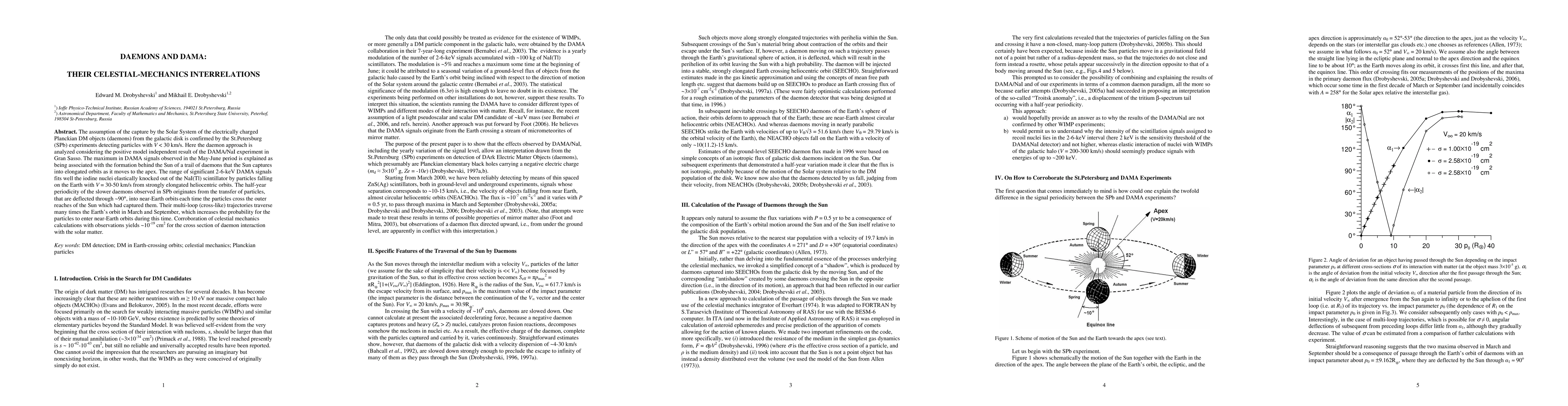 The paper proposes that electrically charged Planckian dark matter particles, called 'daemons', are captured by the Solar System and explain anomalies in DAMA and St.Petersburg experiments. The maximum DAMA signals are linked to daemon trails formed behind the Sun, while slower daemons' periodicity results from their crossing the Sun's outer reaches and entering near-Earth orbits. Celestial mechanics calculations support a daemon-interaction cross section of ~1e-19 cm2 with solar matter.