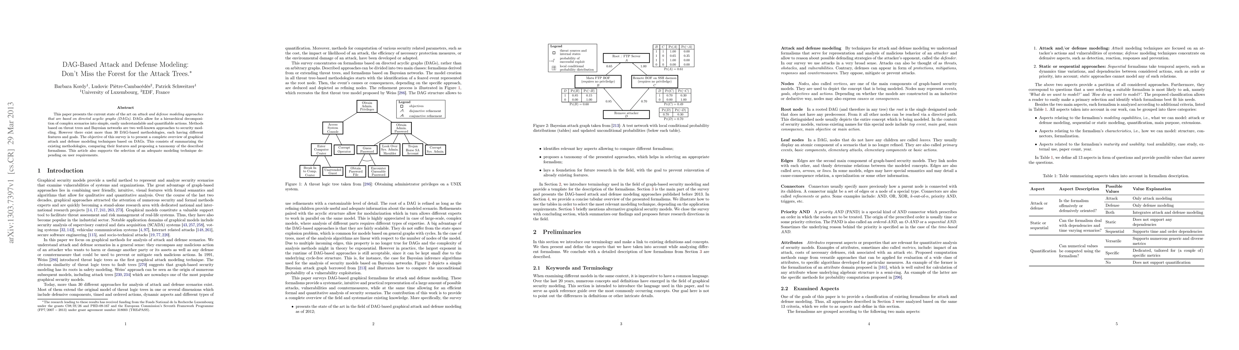 This paper surveys DAG-based attack and defense modeling techniques, comparing over 30 methodologies to provide a taxonomy and guide the selection of appropriate models based on user needs. It emphasizes the advantages of DAGs over traditional threat trees and Bayesian networks.