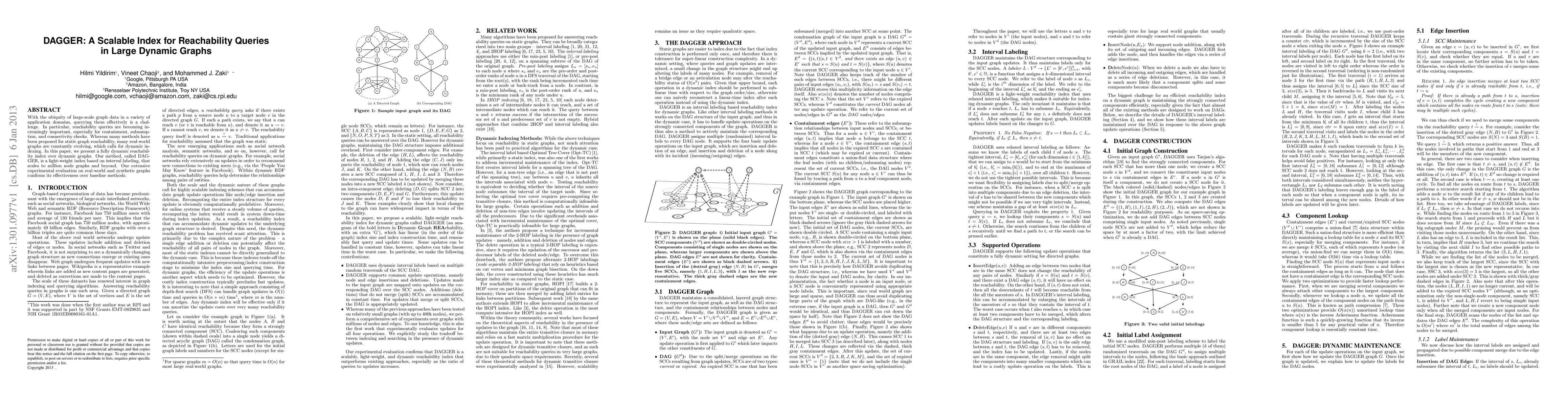 DAGGER is a scalable, dynamic index for efficiently handling reachability queries in large evolving graphs. It leverages interval labeling to maintain accuracy while scaling to graphs with millions of nodes, outperforming existing baseline methods in experimental evaluations.