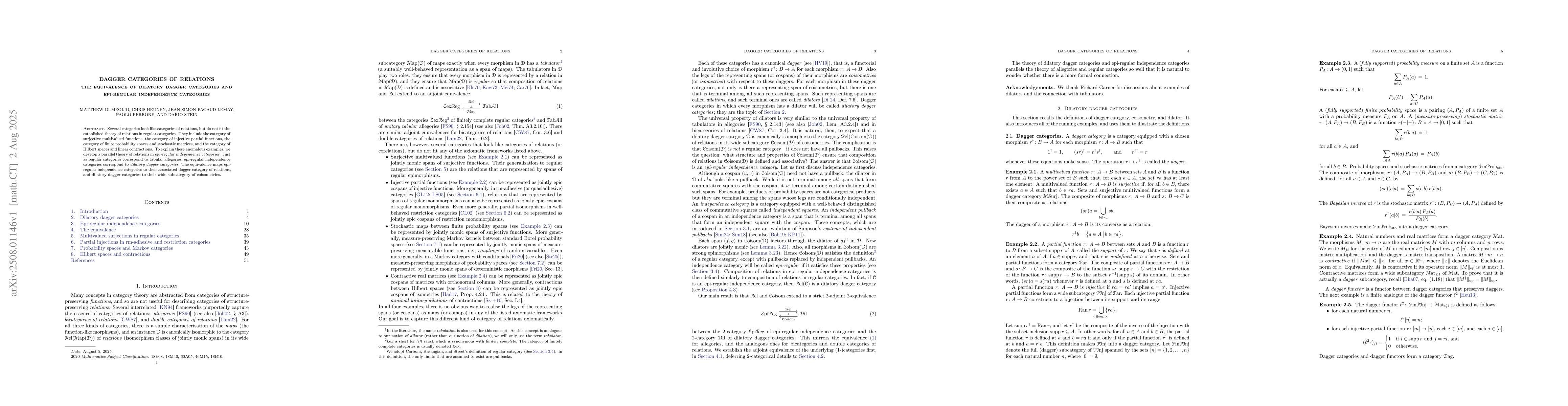 Several categories look like categories of relations, but do not fit the established theory of relations in regular categories. They include the category of surjective multivalued functions, the category of injective partial functions, the category of finite probability spaces and stochastic matrices, and the category of Hilbert spaces and linear contractions. To explain these anomalous examples, we develop a parallel theory of relations in epi-regular independence categories. Just as regular categories correspond to tabular allegories, epi-regular independence categories correspond to dilatory dagger categories. The equivalence maps epi-regular independence categories to their associated dagger category of relations, and dilatory dagger categories to their wide subcategory of coisometries.