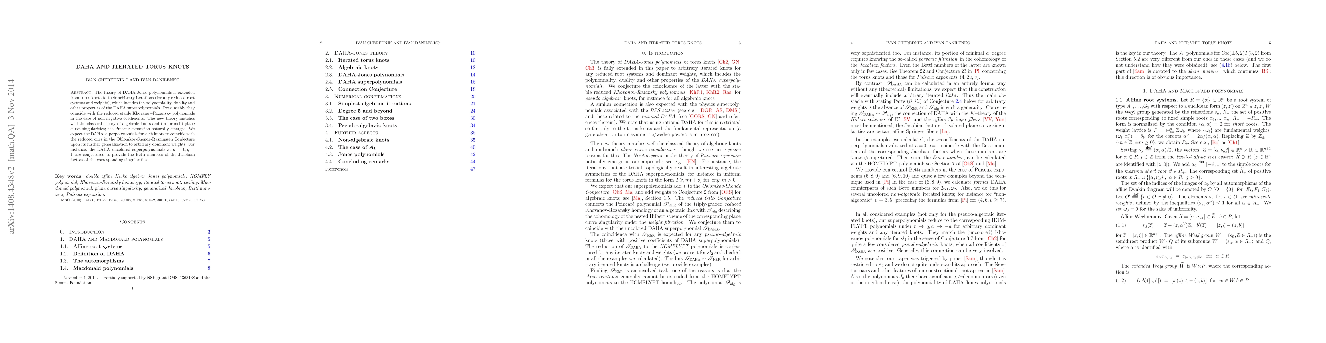The theory of DAHA-Jones polynomials is extended from torus knots to their arbitrary iterations (for any reduced root systems and weights), which incudes the polynomiality, duality and other properties of the DAHA superpolynomials. Presumably they coincide with the reduced stable Khovanov-Rozansky polynomials in the case of non-negative coefficients. The new theory matches well the classical theory of algebraic knots and (unibranch) plane curve singularities; the Puiseux expansion naturally emerges. The corresponding DAHA superpolynomials are expected to coincide with the reduced ones in the Oblomkov-Shende-Rasmussen Conjecture upon its generalization to arbitrary dominant weights. For instance, the DAHA uncolored superpolynomials at a=0, q=1 are conjectured to provide the Betti numbers of the Jacobian factors of the corresponding singularities.