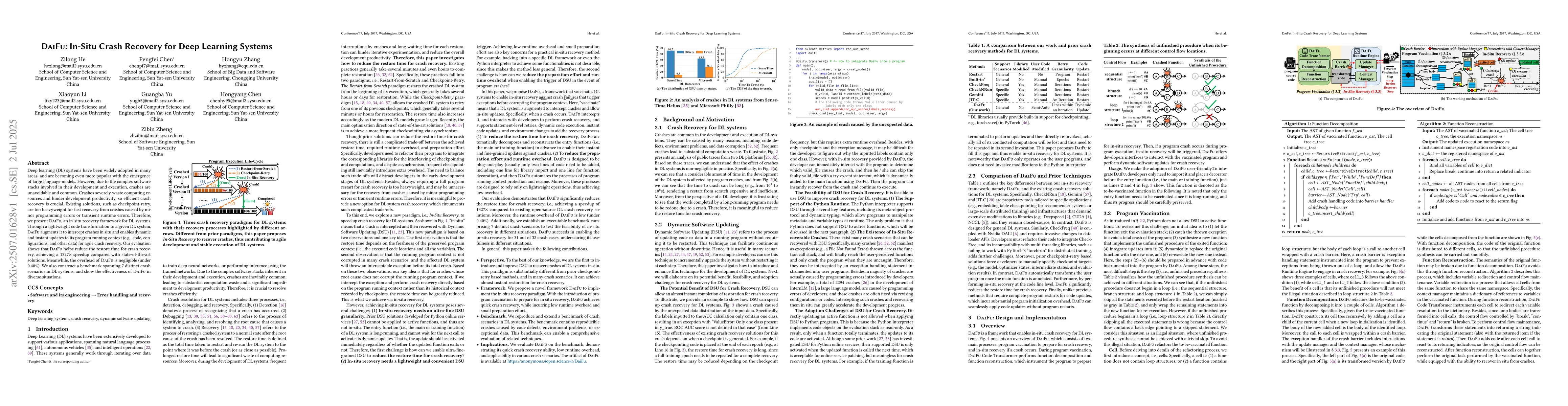 Deep learning (DL) systems have been widely adopted in many areas, and are becoming even more popular with the emergence of large language models. However, due to the complex software stacks involved in their development and execution, crashes are unavoidable and common. Crashes severely waste computing resources and hinder development productivity, so efficient crash recovery is crucial. Existing solutions, such as checkpoint-retry, are too heavyweight for fast recovery from crashes caused by minor programming errors or transient runtime errors. Therefore, we present DaiFu, an in-situ recovery framework for DL systems. Through a lightweight code transformation to a given DL system, DaiFu augments it to intercept crashes in situ and enables dynamic and instant updates to its program running context (e.g., code, configurations, and other data) for agile crash recovery. Our evaluation shows that DaiFu helps reduce the restore time for crash recovery, achieving a 1372x speedup compared with state-of-the-art solutions. Meanwhile, the overhead of DaiFu is negligible (under 0.40%). We also construct a benchmark spanning 7 distinct crash scenarios in DL systems, and show the effectiveness of DaiFu in diverse situations.