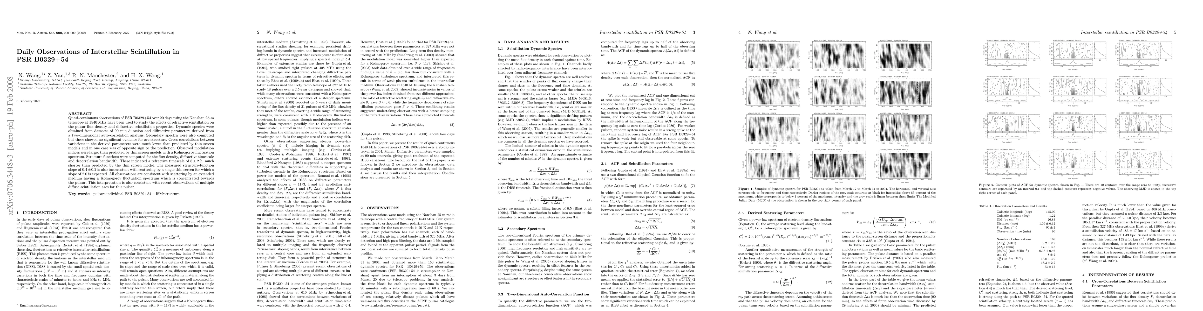 Daily observations of PSR B0329+54 reveal refractive scintillation with a shorter timescale than predicted, indicating scattering by an extended medium.