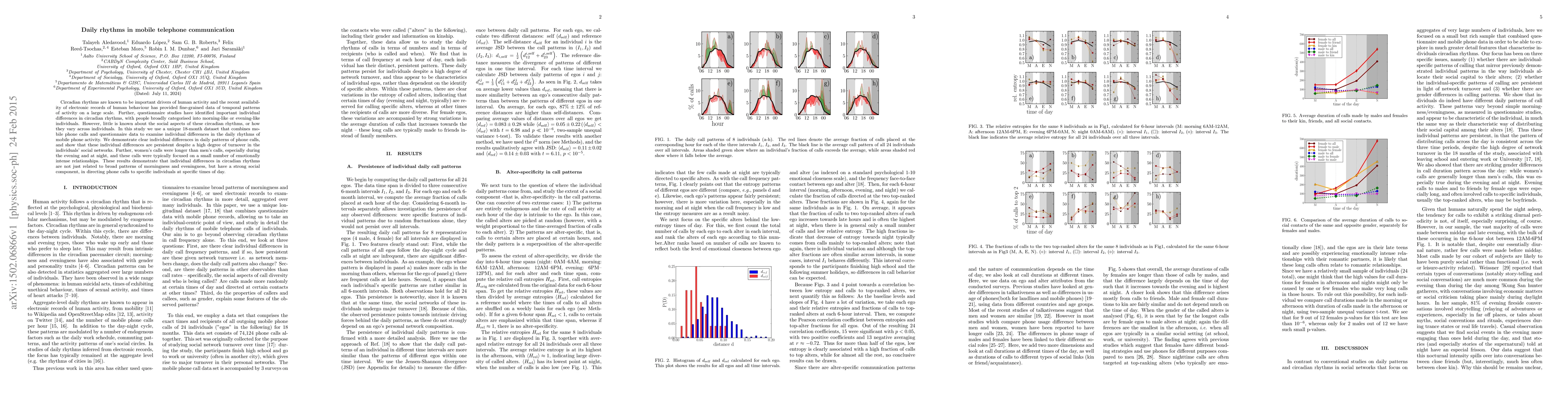 This study investigates individual differences in daily mobile phone activity rhythms using an 18-month dataset combining mobile phone records and questionnaire data. It reveals persistent individual differences in phone call patterns, highlighting a strong social component that directs calls to specific individuals at particular times, with women's evening calls tending to be longer and more emotionally intense.