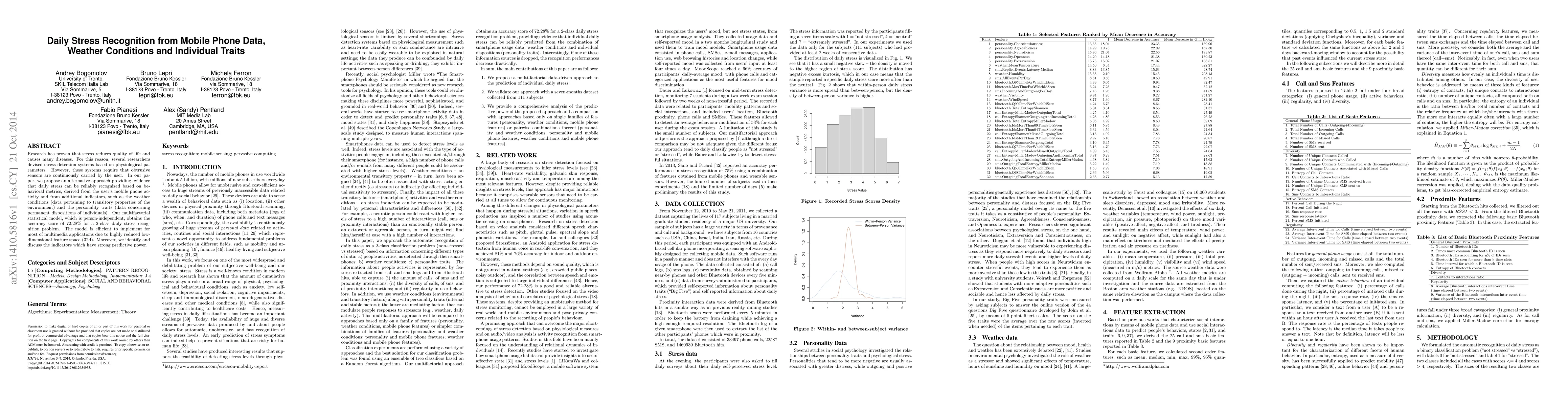 A new approach for daily stress recognition has been developed using mobile phone activity data, weather conditions, and individual personality traits, achieving an accuracy score of 72.28%.