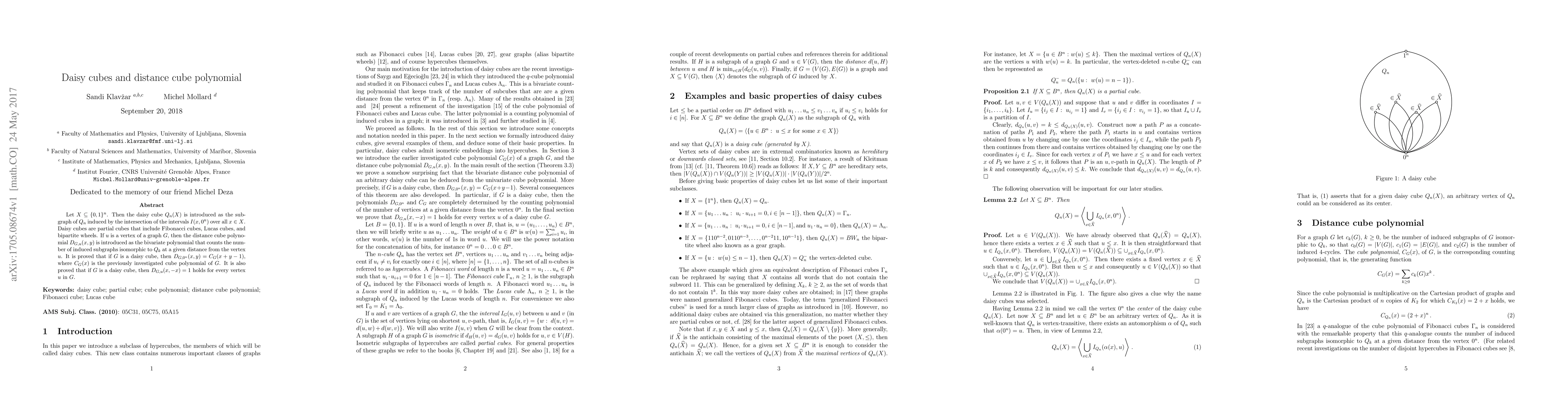 This paper introduces daisy cubes, a class of partial cubes encompassing Fibonacci cubes, Lucas cubes, and bipartite wheels. It defines the distance cube polynomial for a vertex in a graph, proving that for daisy cubes, this polynomial simplifies to a specific form and holds true for all vertices.