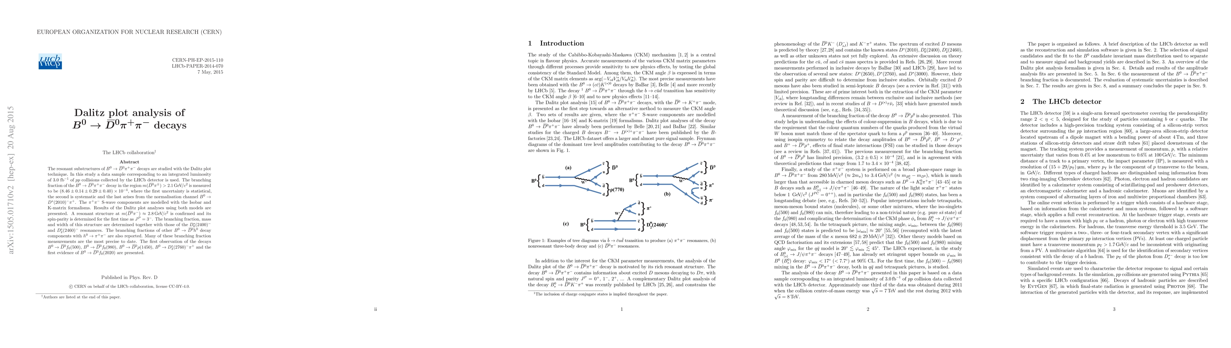 This study analyzes the resonant substructures in $B^0 \to \overline{D}^0 \pi^+\pi^-$ decays using the Dalitz plot technique, determining precise branching fractions and identifying new resonances including the first observation of several decay modes.