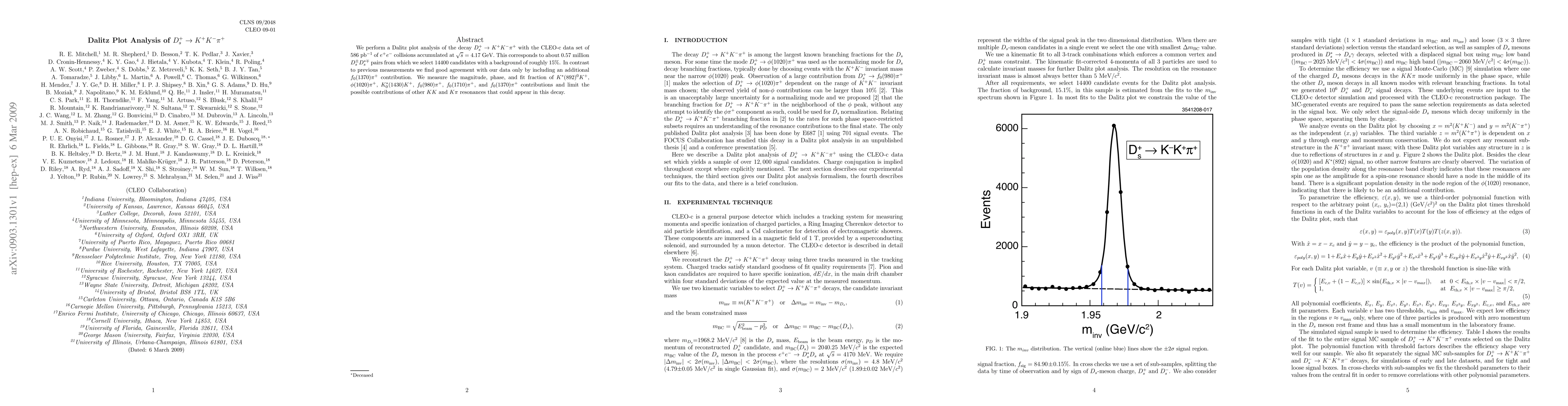 This study analyzes the decay Ds to K+K-pi+ using the CLEO-c data set, finding that an additional f_0(1370)pi+ contribution is necessary for agreement with the data. The analysis measures the magnitude, phase, and fit fraction of various resonances and limits contributions from other KK and Kpi resonances.