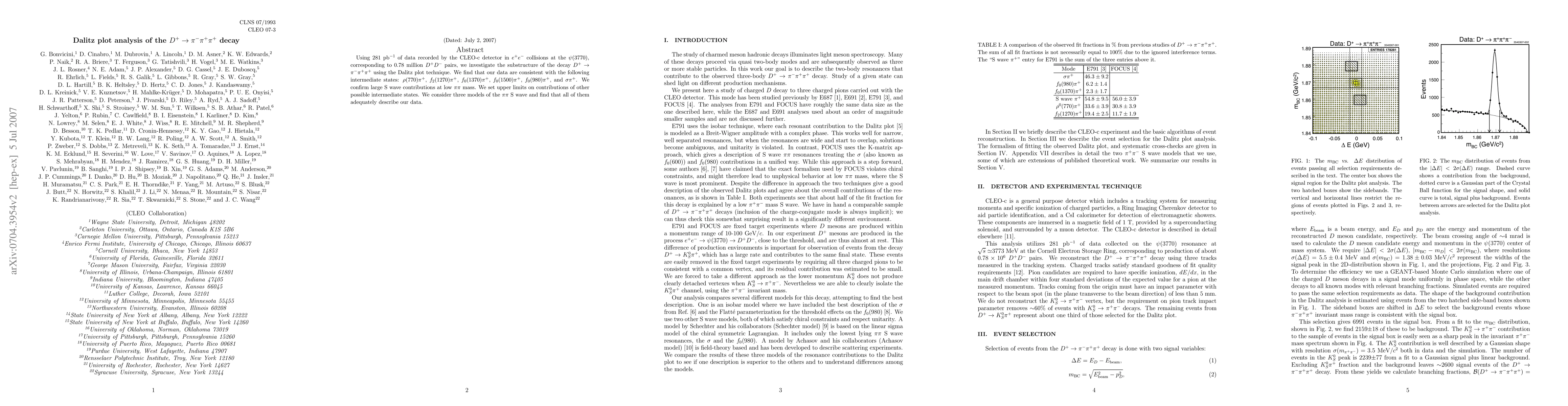 The CLEO-c experiment analyzed 0.78 million D+D- pairs from e+e- collisions at psi(3770), using D+ to pi- pi+ pi+ decay and the Dalitz plot technique. They confirmed intermediate states like rho(770)pi+, f_2(1270)pi+, f_0(1370)pi+, f_0(1500)pi+, f_0(980)pi+, and sigma pi+. Large S wave contributions at low pi pi mass were found, with upper limits set for other possible states, and three pi pi S wave models adequately describing the data.