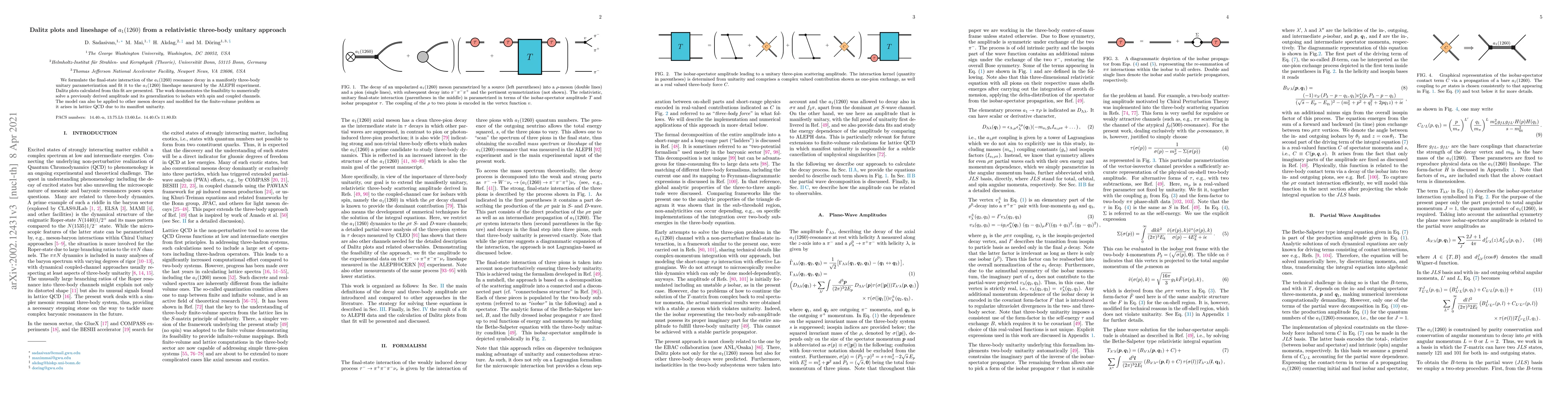 This study uses a new approach to analyze the $a_1(1260)$ resonance decay, fitting its lineshape with a relativistic three-body model that demonstrates numerical solutions for previously derived amplitudes.