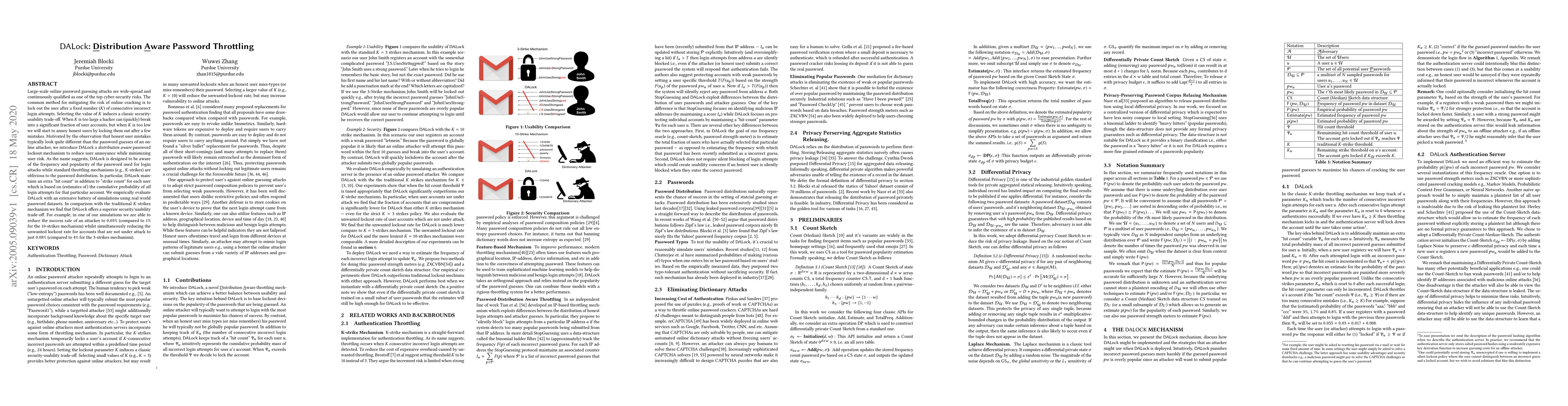 DALock introduces a distribution-aware password throttling mechanism that differentiates between honest user mistakes and attacker attempts, achieving a better security-usability balance compared to traditional $K$-strikes methods. Empirical evaluations show DALock reduces attacker success rates significantly while minimizing false lockouts.