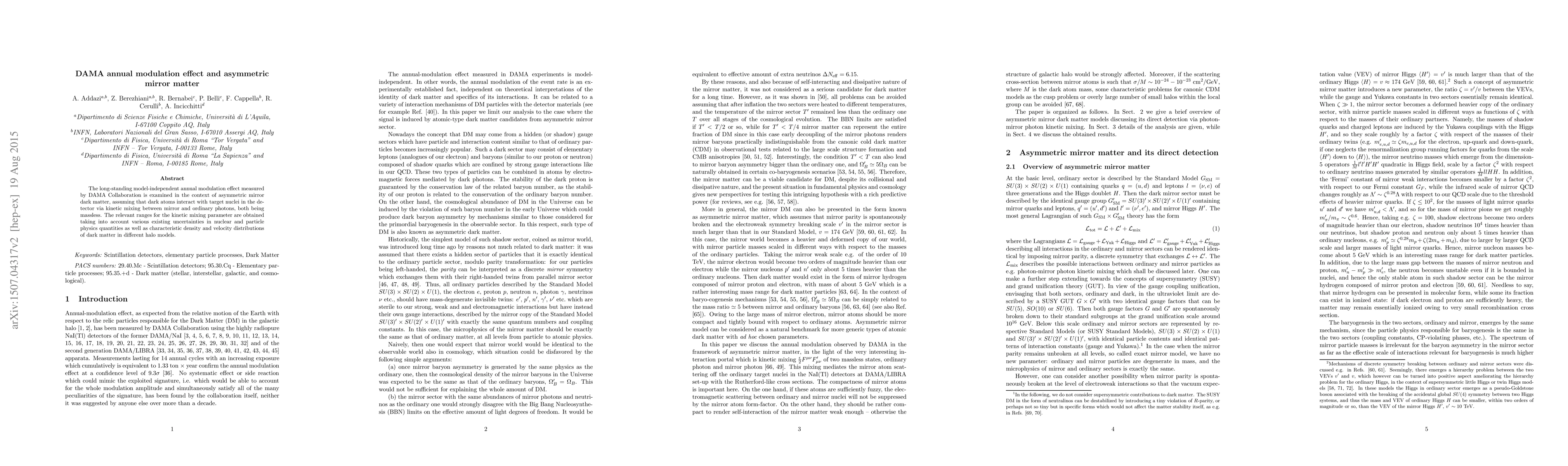 This paper explores the DAMA annual modulation effect through the lens of asymmetric mirror dark matter, proposing that dark atoms interact with detector nuclei via kinetic mixing between mirror and ordinary photons. The study determines feasible ranges for the kinetic mixing parameter, considering uncertainties in nuclear and particle physics and dark matter distribution models.