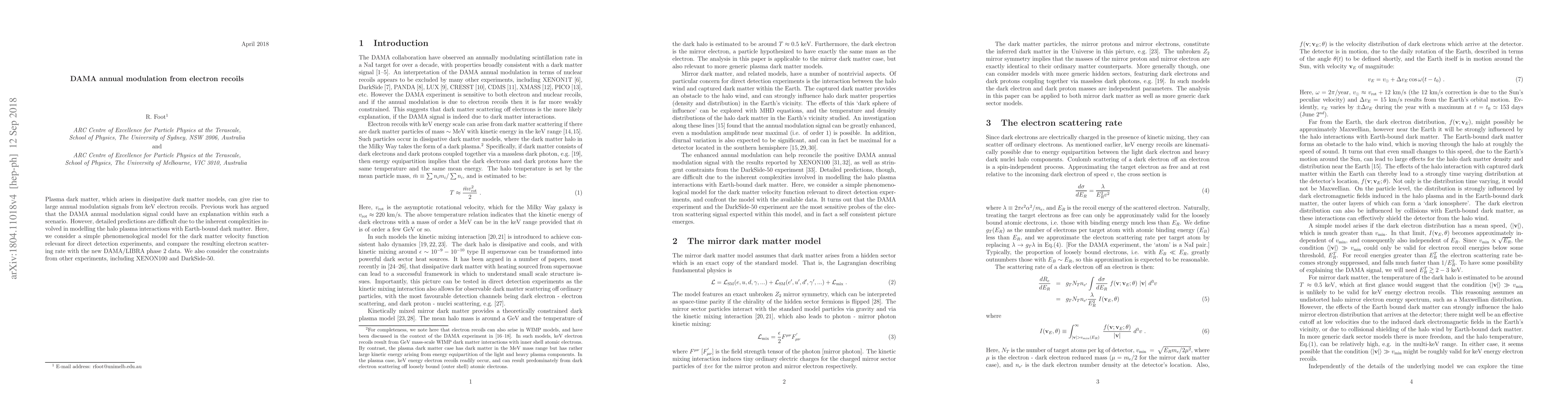 Plasma dark matter, which arises in dissipative dark matter models, can give rise to large annual modulation signals from keV electron recoils. Previous work has argued that the DAMA annual modulation signal could have an explanation within such a scenario. However, detailed predictions are difficult due to the inherent complexities involved in modelling the halo plasma interactions with Earth-bound dark matter. Here, we consider a simple phenomenological model for the dark matter velocity function relevant for direct detection experiments, and compare the resulting electron scattering rate with the new DAMA/LIBRA phase 2 data. We also consider the constraints from other experiments, including XENON100 and DarkSide-50.