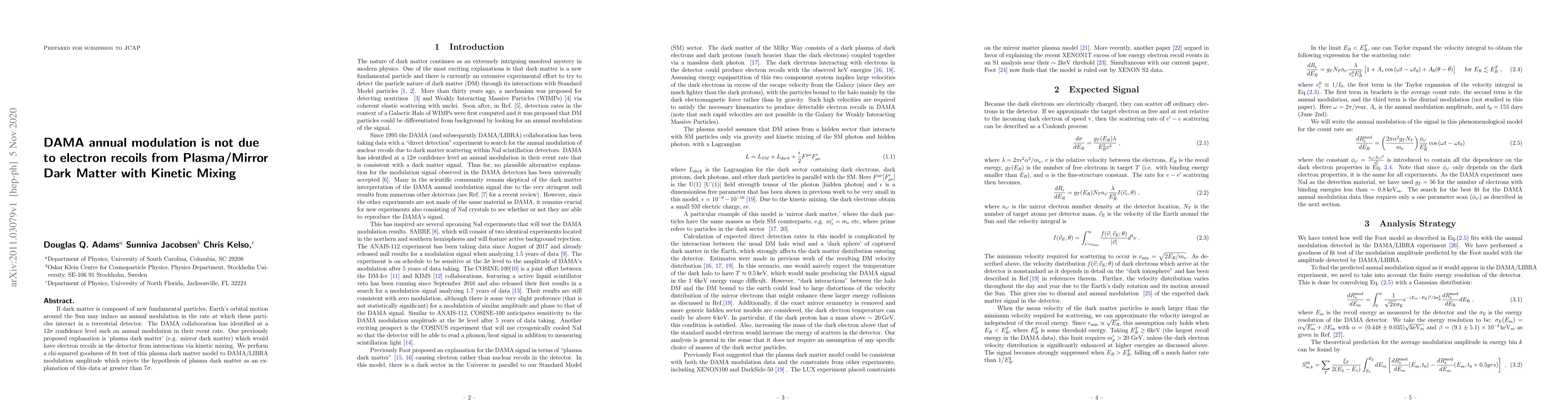 The DAMA collaboration detected an annual modulation in their dark matter event rate, but a chi-squared test rejects the hypothesis that this modulation is due to electron recoils from plasma/mirror dark matter via kinetic mixing at over 7$\sigma$ confidence level. This suggests alternative explanations for the observed modulation are needed.