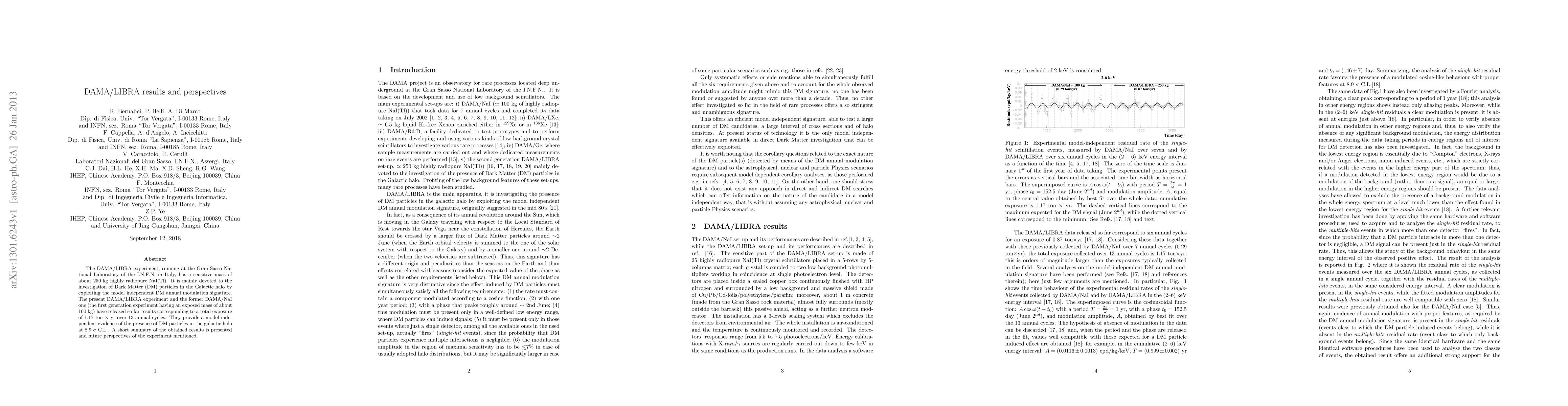 The DAMA/LIBRA experiment, utilizing 250 kg of highly radiopure NaI(Tl), has provided evidence for Dark Matter particles at 8.9 sigma confidence level over 13 annual cycles. Future perspectives include continued searches for Dark Matter with enhanced sensitivity.